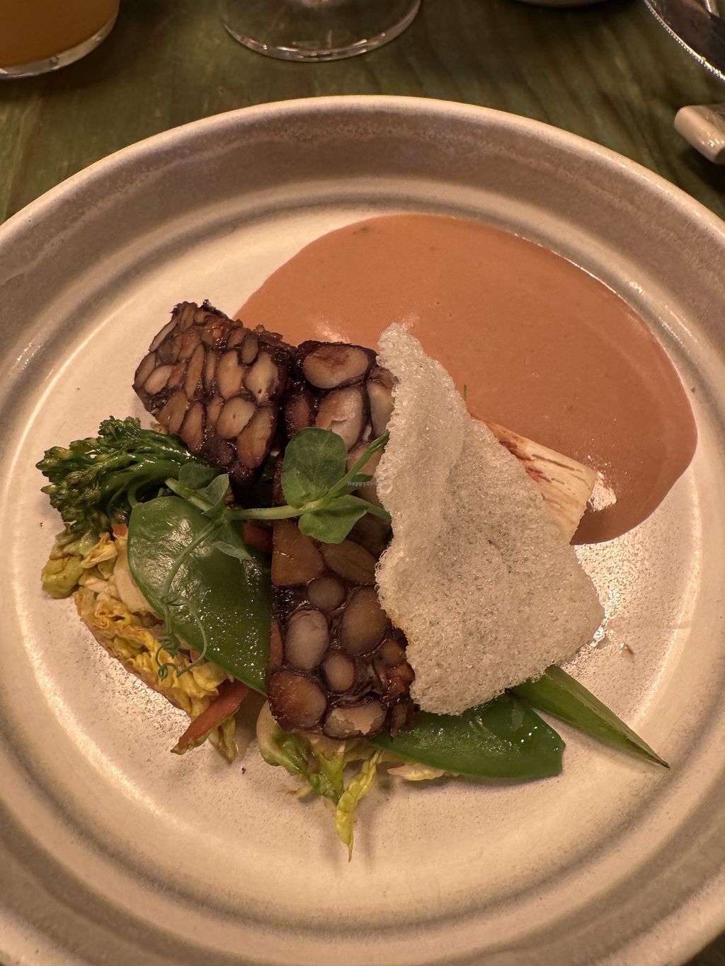 The menu is extensive! These are small plates. Think at least three per person to get your fill. But they’re so creative with incredible flavors! I had the crispy cauliflower, which was kind of like gochujang buffalo bites. Then the focaccia with black garlic “butter” and the black bean tempeh. It was absolutely orgasmic. I would 10000% recommend. Please do not miss this restaurant if you come to Lisbon.