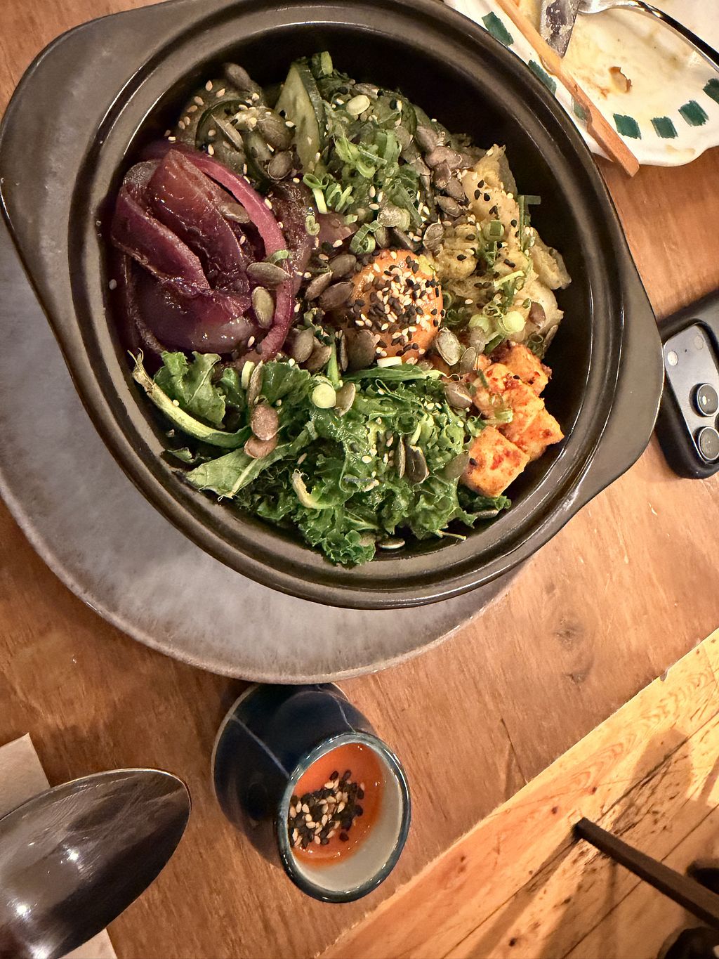 We just ordered 3 dishes between 2 of us, the falafel, cauliflower and bimimbap, the last of which cost 16 euros. Every dish was exceptionally tasty BUT the portions were so small for the price, we really don’t expect to be going home hungry at these prices!