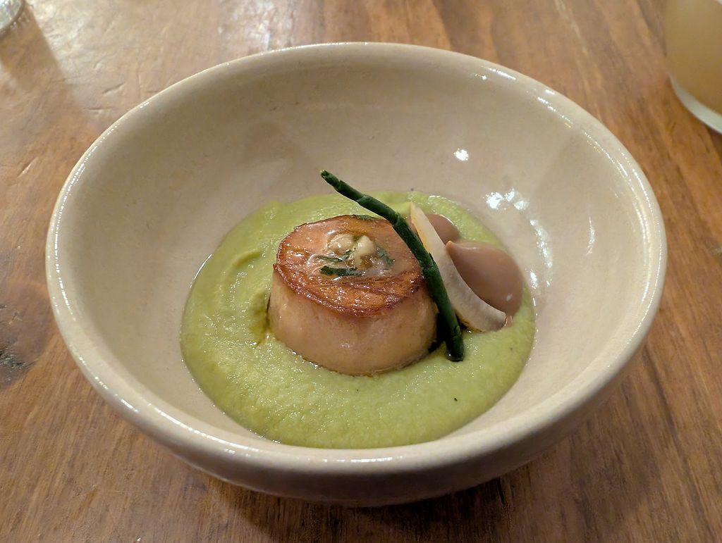 Mushroom scallop on pea cream