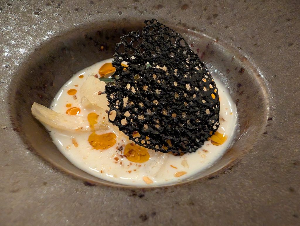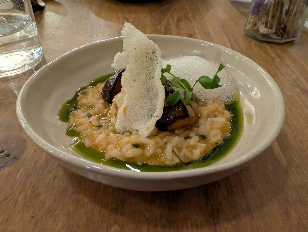 'Sea' rice with cilantro oil, mushrooms, and foam