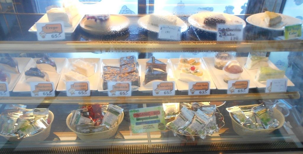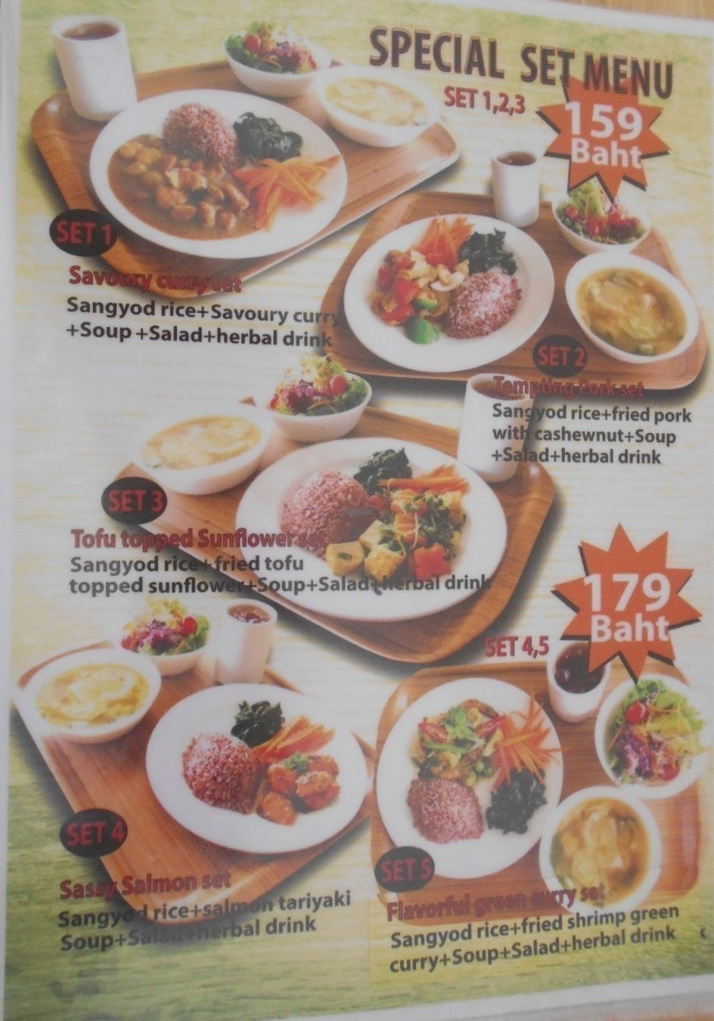 The one thing that looked like good pricing value on their menu is the “Sets”. I had set #3 for 159b, which includes: Tofu and Veggies (tasted very good with the exception of the tofu that was the smoked flavored stuff), Cabbage Soup (very bland, zero flavoring in it, I am guessing just cabbage boiled in water), Brown Rice (It was under-cooked and hard or perhaps recooked that took out the moisture and made it hard. Had to put it in my soup to soften enough to be edible.), Salad (good size, very fresh and tasty dressing), Herbal drink (taste good) > so all in all it was a great deal for the amount of food but not for the tastes.