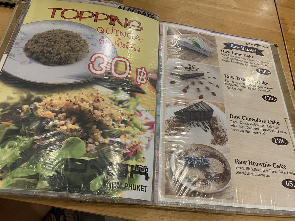 Alot of vegan options, both raw and cooked. We had the coconut soup with rice, stirr fried noodles w/vegetables and vegetable spring rolls, everything was delicious! Definitely gonna visit many times during our stay in Phuket.
