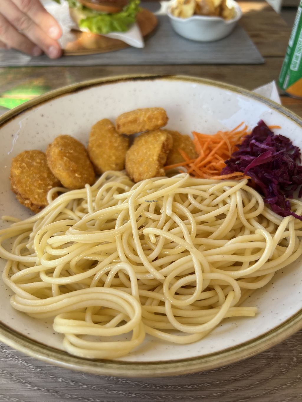 De vegan burger was lekker, het slaatje en de vegan nougats met spaghe…