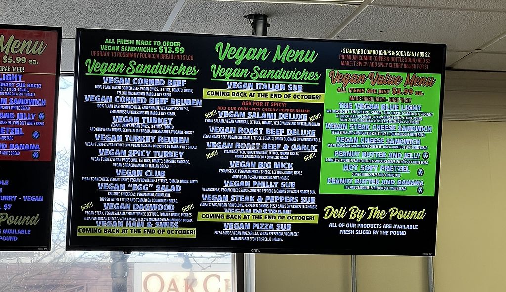 The deli has an updated menu with a full board of vegan options, including different sandwiches, salads, and desserts! The food is a bit pricey but has good quality and portions. Check out the vegan cheesecake, it will not disappoint!