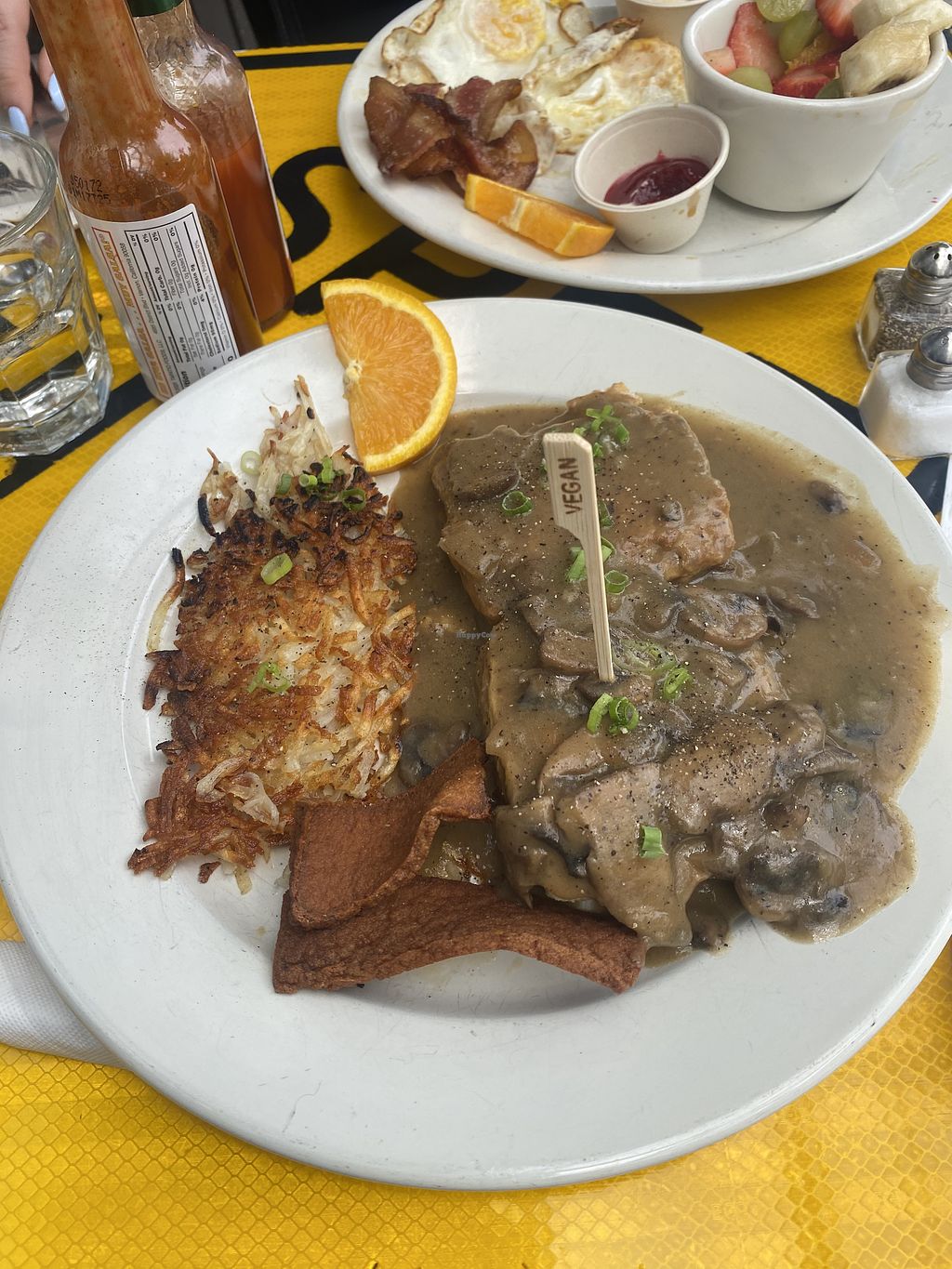 Yummy vegan options. Went here for brunch and had the “Chicken” tenders with waffle and the vegan biscuits and gravy. Both really good and would get again. I’m very particular about my hash browns, need the right amount of crispy, and they were excellent here with the biscuits and gravy. Will try adding the vegan sausage with it next time too.