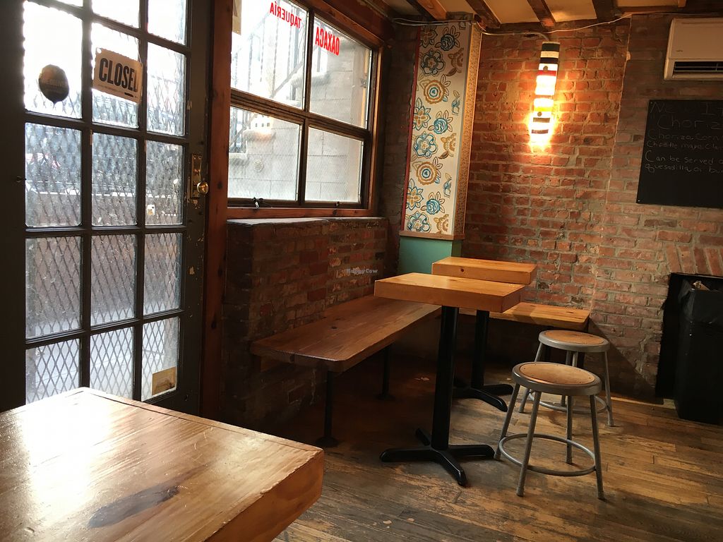 Small place in a basement. Servers where nice and accommodating. Food was generally cold, even the beyond meat. Quite expensive compared to the amount of food you get. Rice and beans to a 3 taco combo.