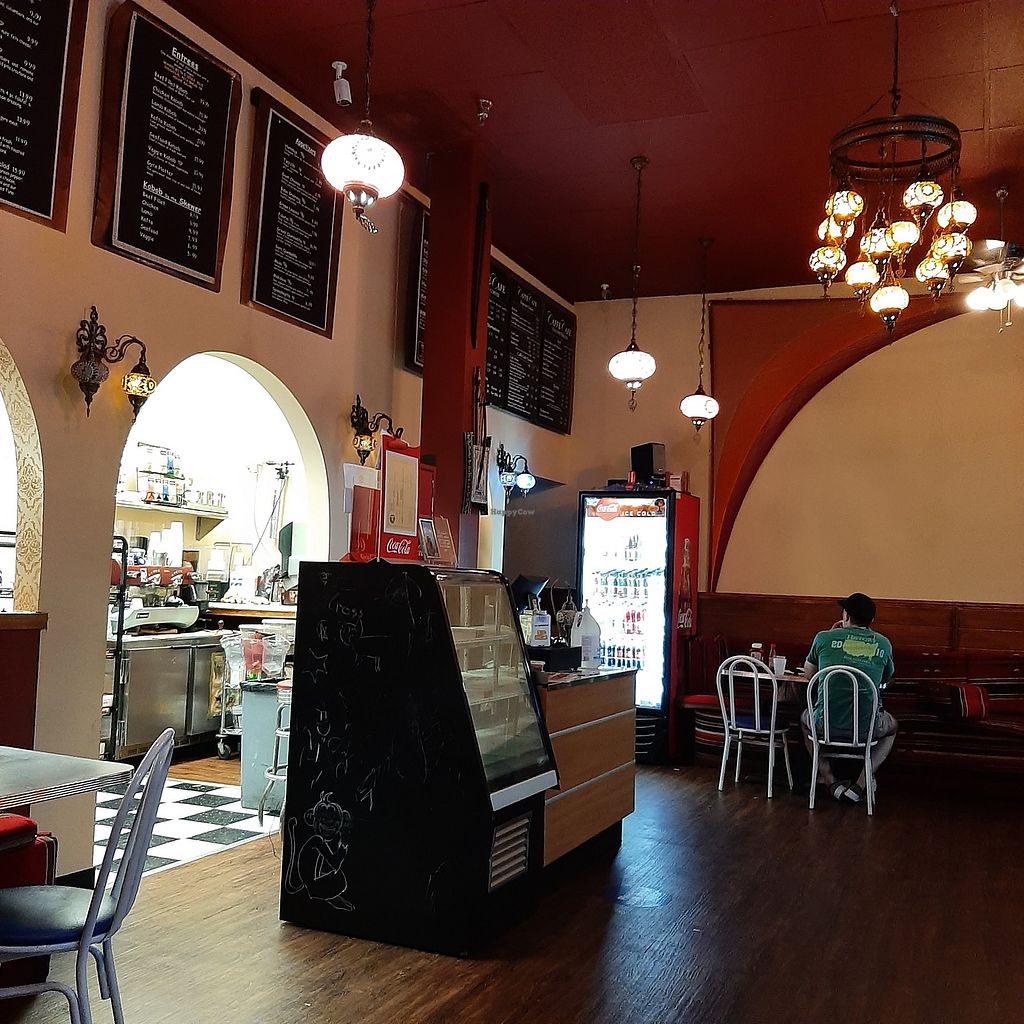 We ordered the appetizer plate with hummus, baba ganoush, grape leaves and pita. We also ordered a falafel sandwich and a roasted vegetable sandwich. Everything tasted really delicious. The people were really warm and friendly and accommodating. The restaurant was clean and had couch seats with cushions. We really loved the food and atmosphere. I was so hungry I forgot to take pictures of the food!