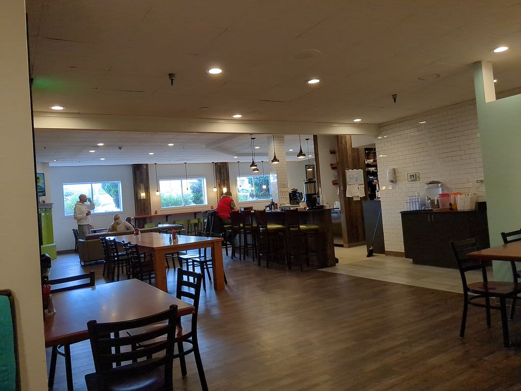 They took the veg. panini off the menu, so avocado toast is the only vegan entree now (Aug 24, 2024). Plastic fruit cups available from the cold case.