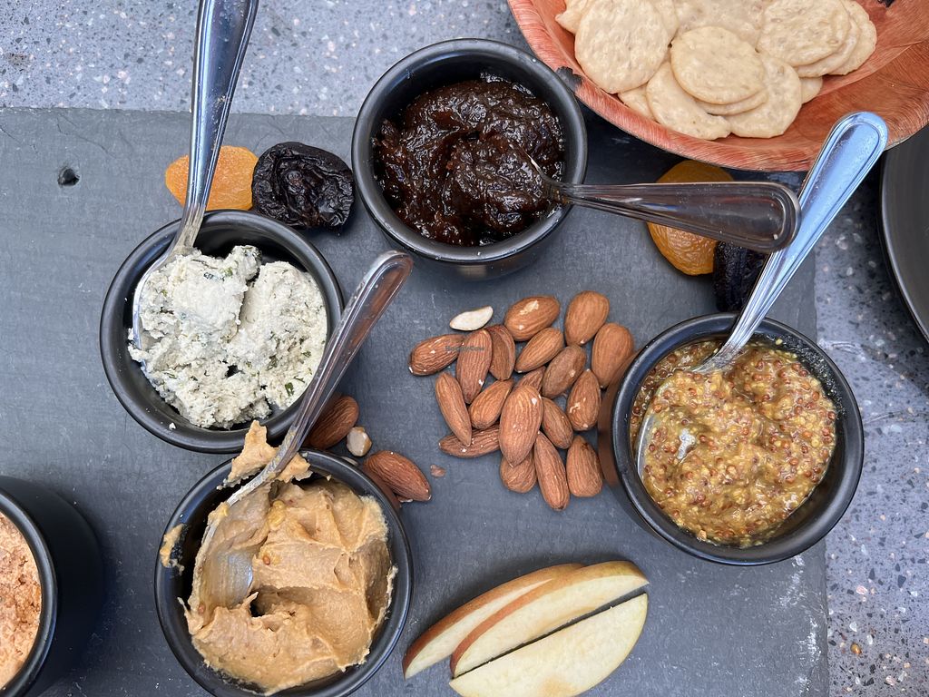 Read moreThe cheese board itself was kinda silly. It’s $28 and you get 3 wee little cups of spreadable cheese, a few almonds, prunes and apricots and mustard and fig jam.