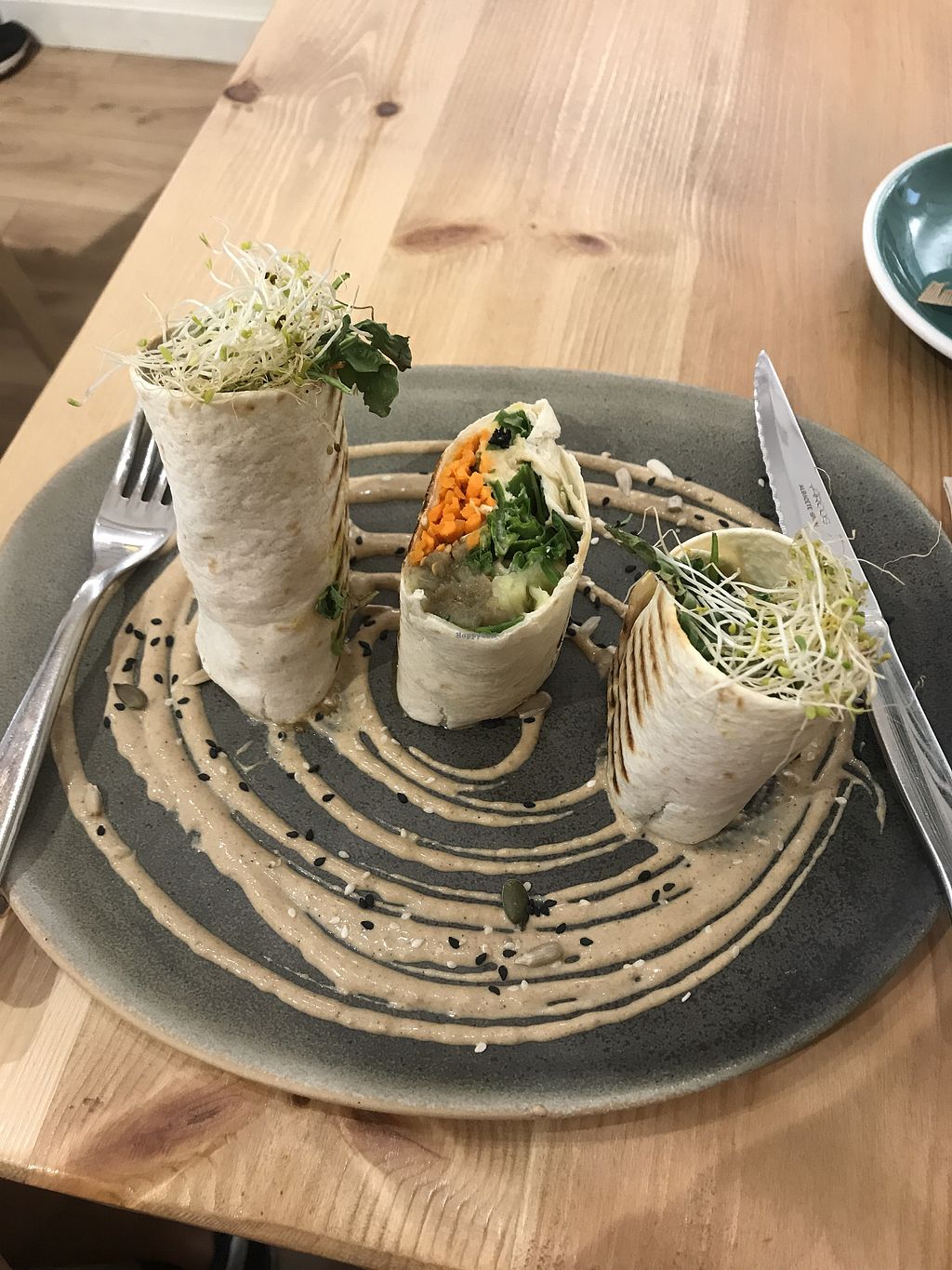 The Hummus wrap is to die for! They have lots of vegan options and everything sounds amazing. The price is good. I would totally recommend this place.