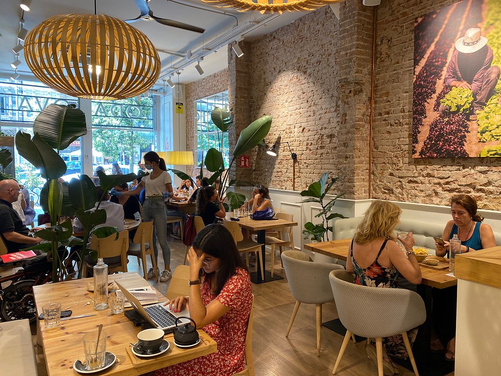 Very nice café - style restaurant in a pretty great location. Ideal for working there too. Has a few vegan options, not so many, but what I've tried is pretty good. The price is more on the expensive side plus they charge extra for vegetable milk in the beverages.
