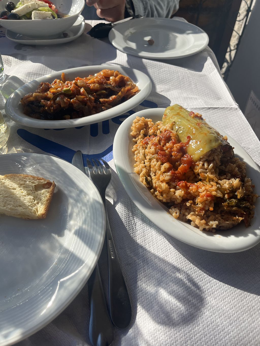 Menu, V for vegetarian (vegan is only stuffed peppers and eggplant)