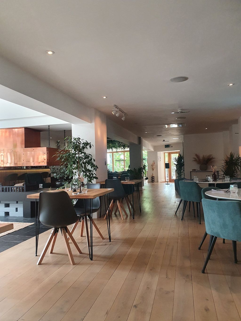 The restaurant is big, light and airy. The decor is beautiful creating a lovely atmosphere. There is a good choice of vegan food and the standard of the food was excellent. It is dog friendly which is great. We will definitely be back.
