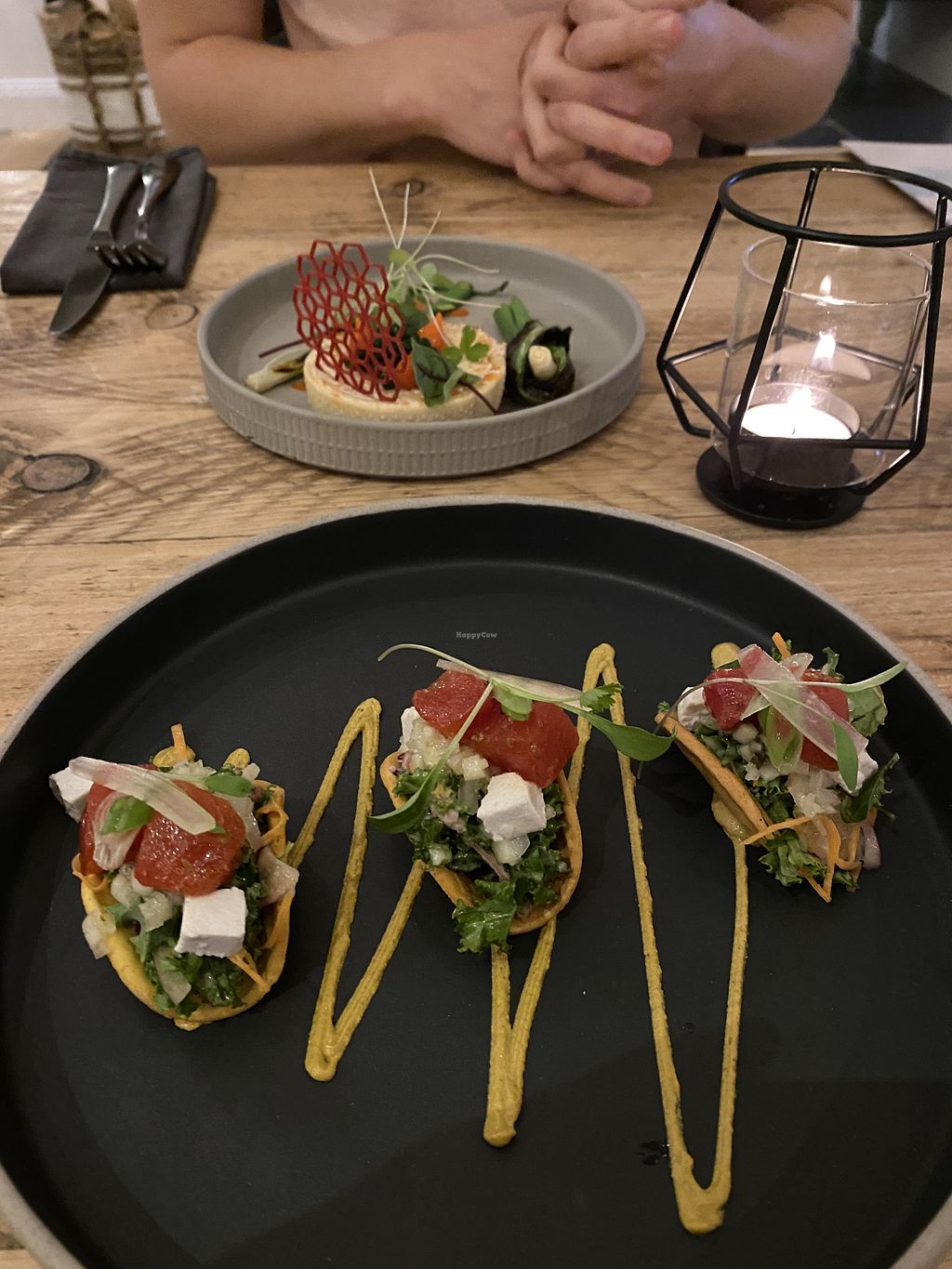 It's an amazing vegan restaurant in the south with warm atmosphere. After the incredible starters and upon reading the main's descriptions, we didn't feel the mains met our expectations and left us thinking next time we'll try the other dishes, which was unfortunate but didn't put us off. Will come again for tapas & cocktails. Staff were great, left us a celebratory card on table. Awesome.