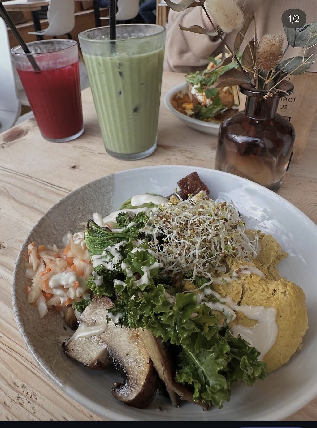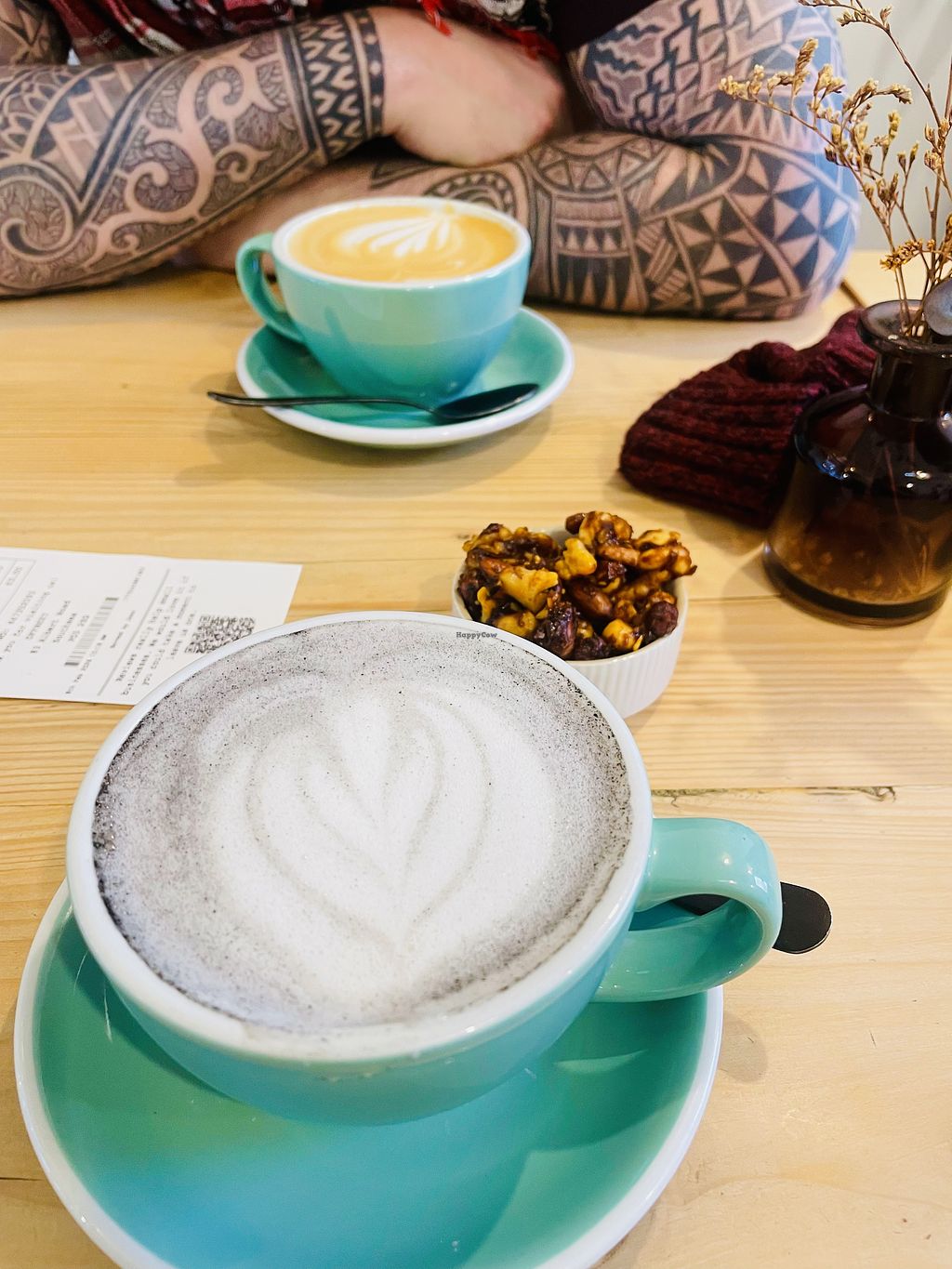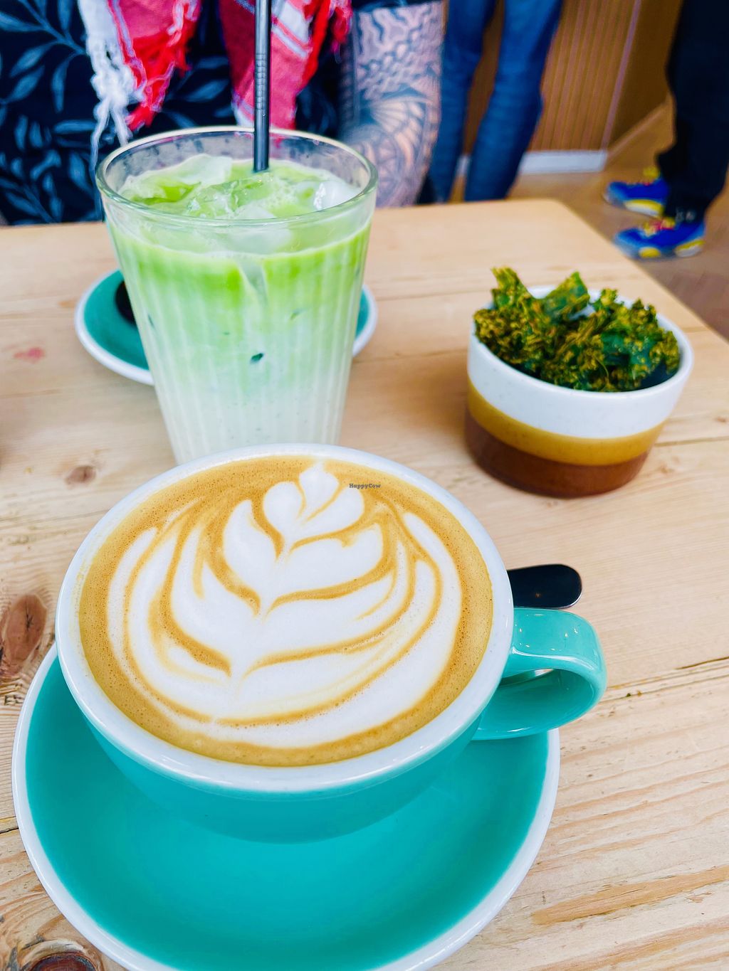 Coconut latte, raspberry matcha latte and cheesy kale chips- unbelieva…