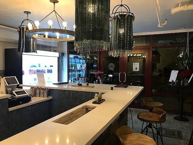Juice and health food bar situated next to Moonlight Beach. Offers a variety of cold pressed juices in addition to a few light food items like fruit bowls, salads, waffles, and toast with avocado or tomato. Vegan except for bee products. Reported closed May 2021.