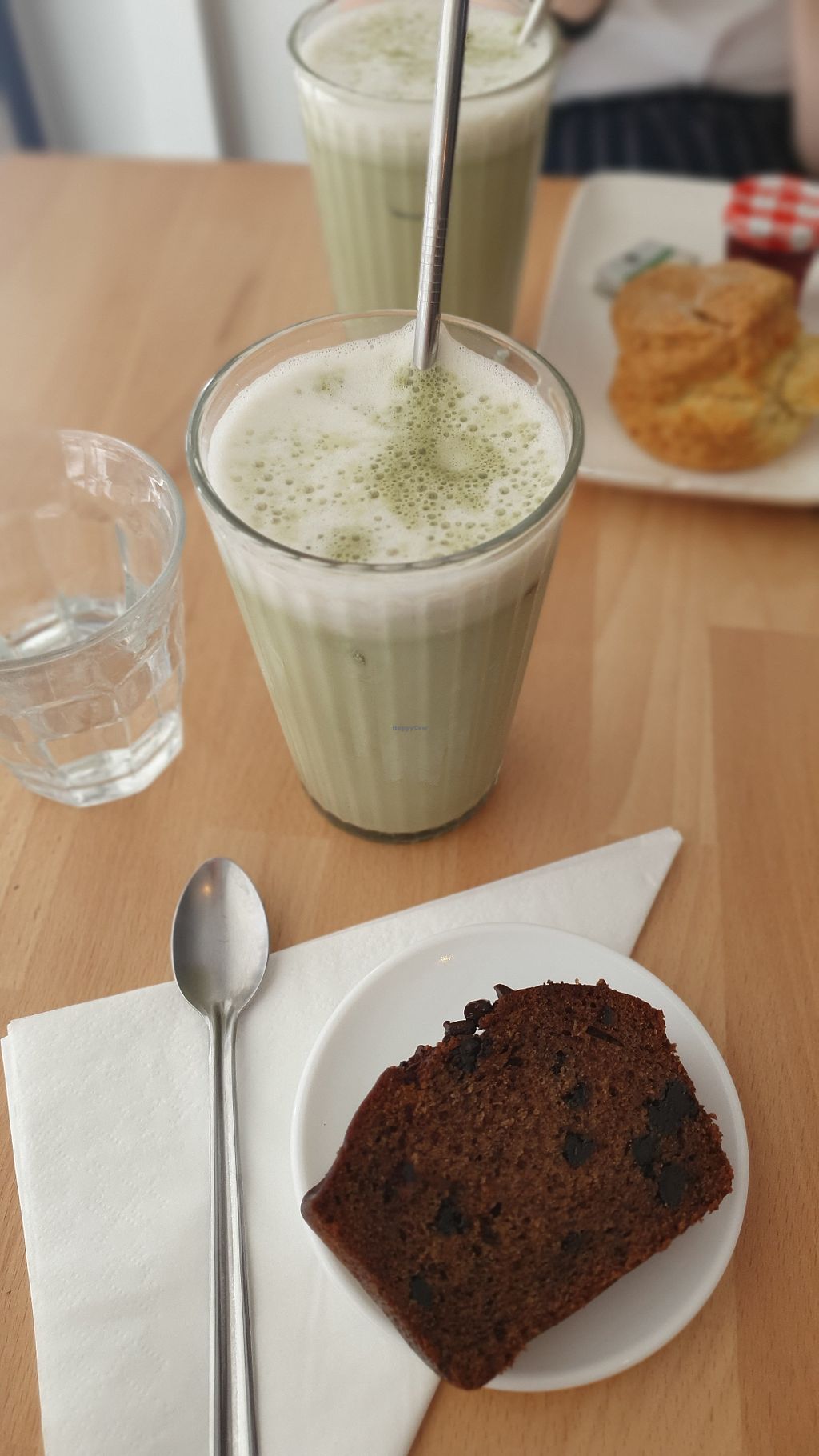 Matcha latte and the chocolate banana bread!