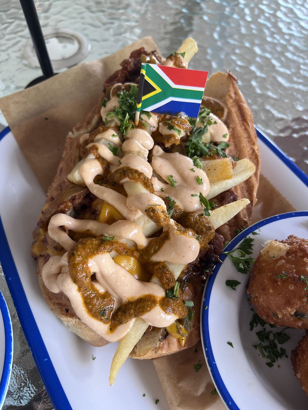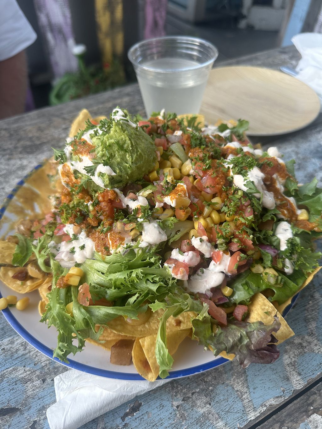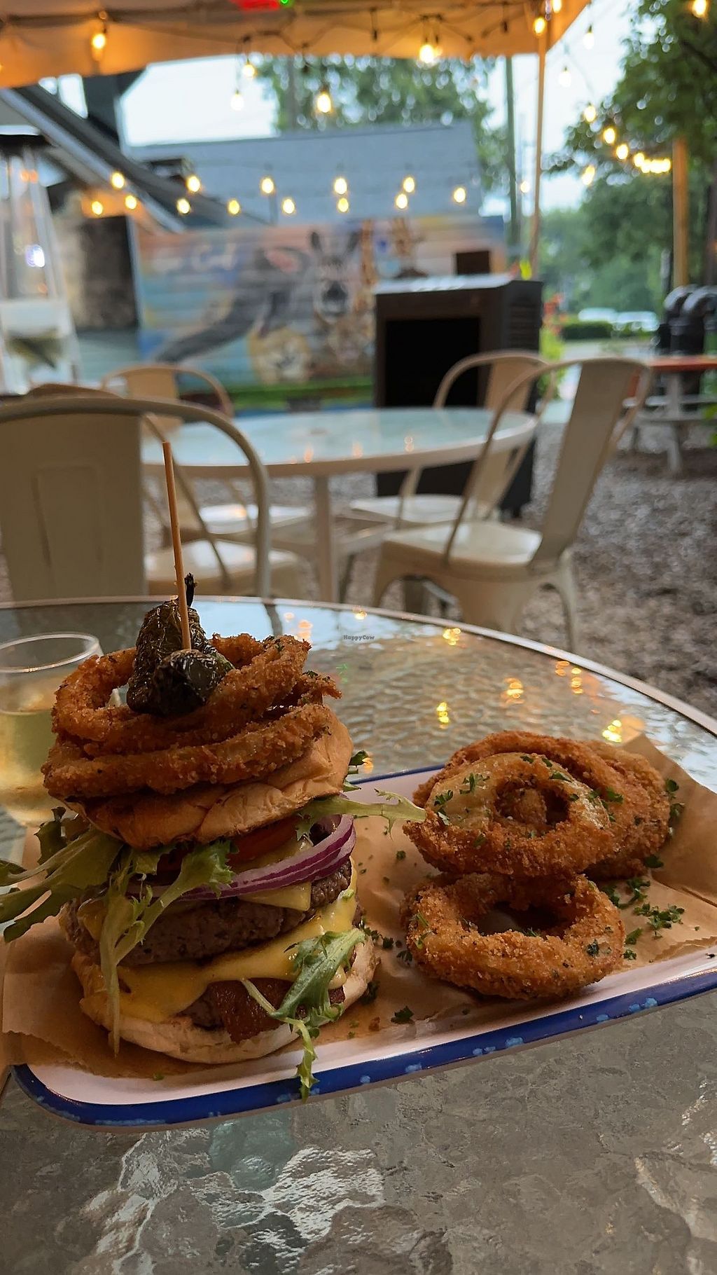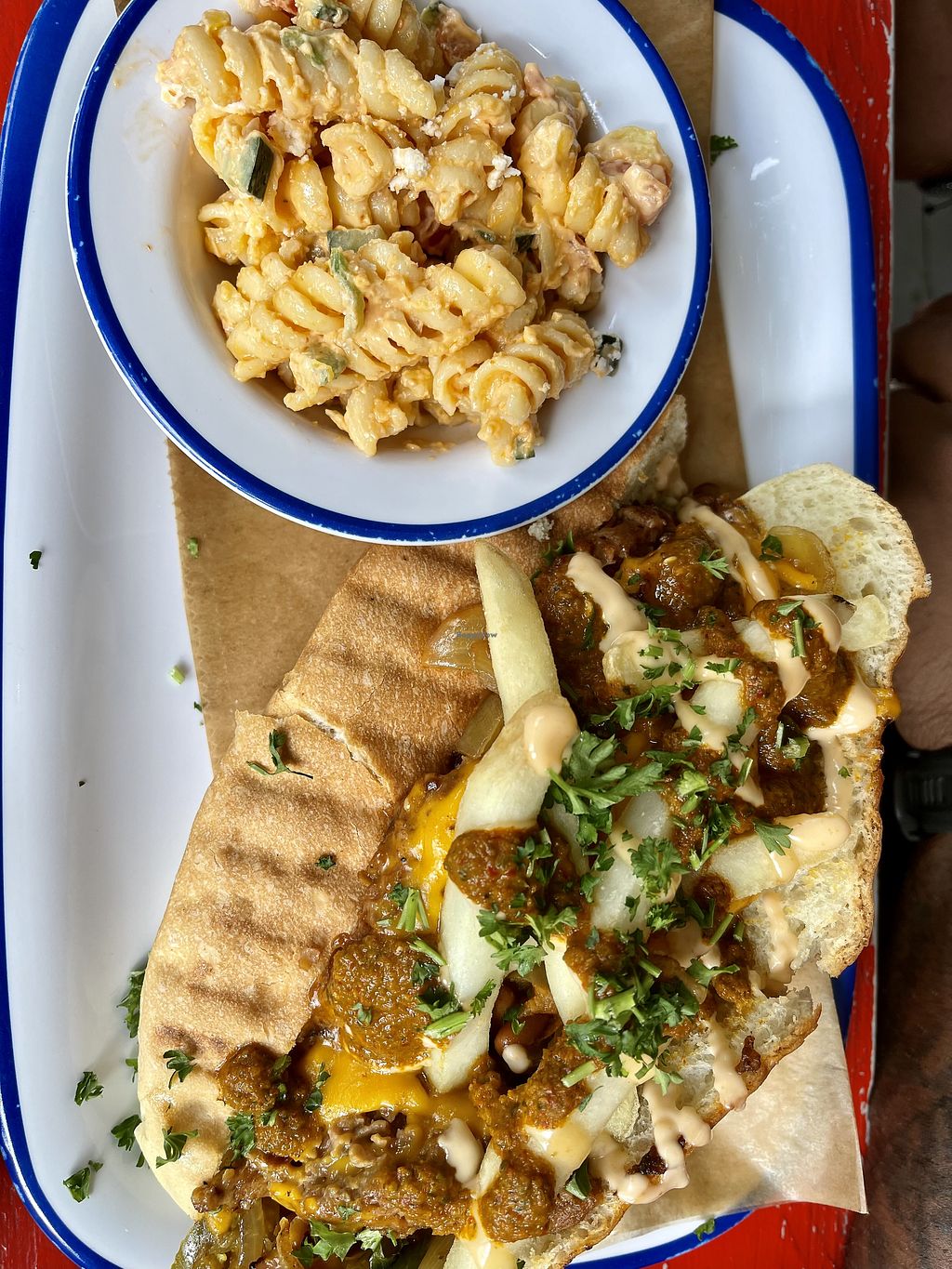 Hippie Chick Vurger with street elote and Waka Waka Burger with chicke…