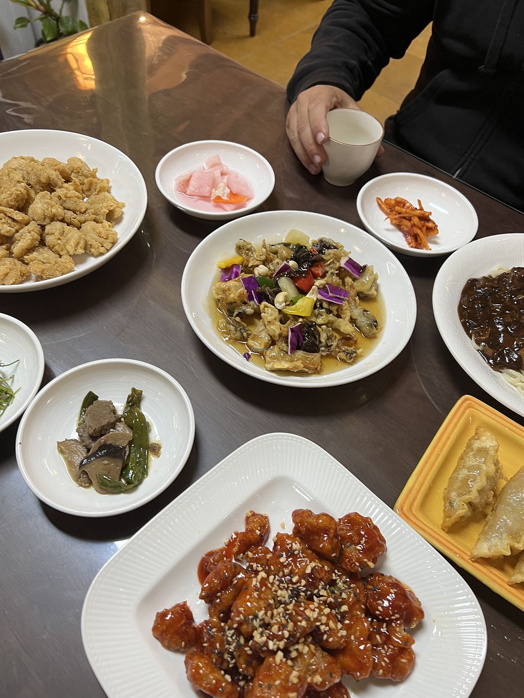 Jajangmyeon, spicy tofu stew, Outer leave stew and kimchi dumplings