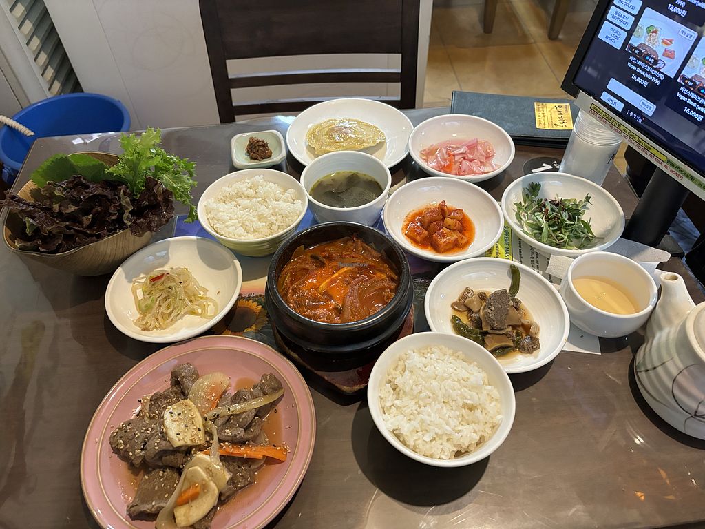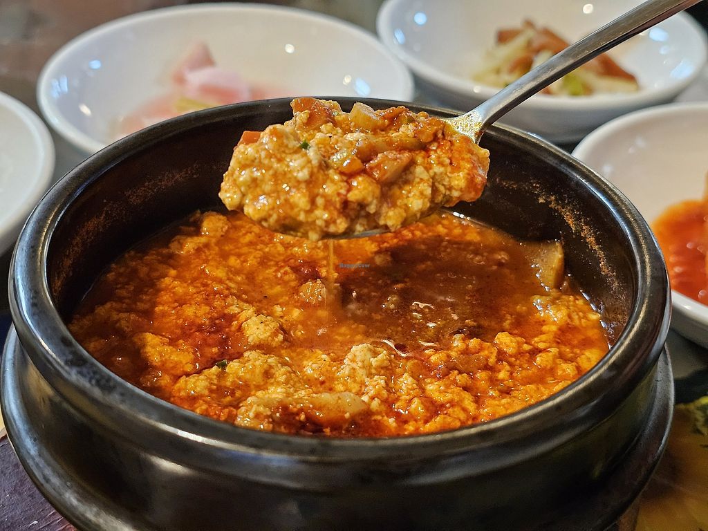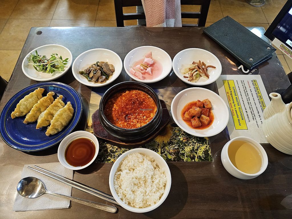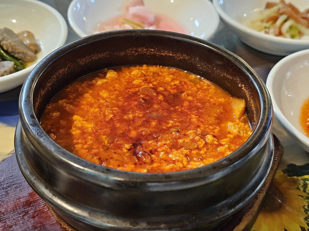 Kimchi soup ( spicy) and side dishes