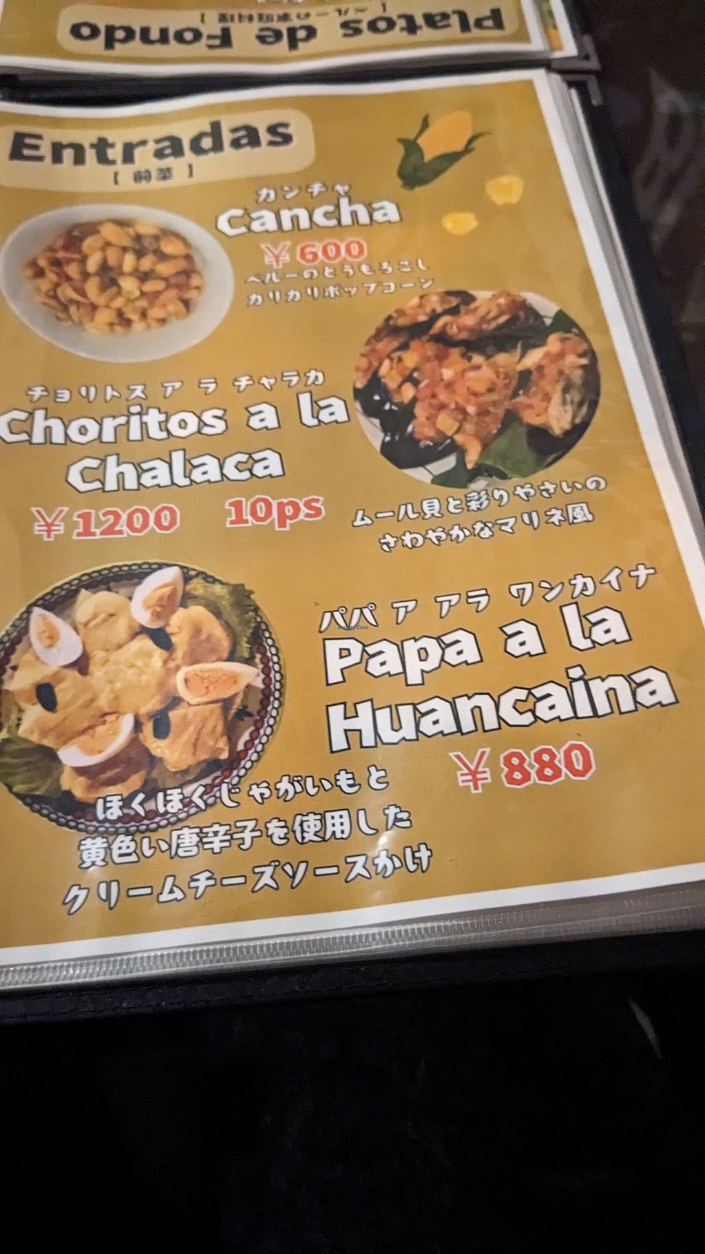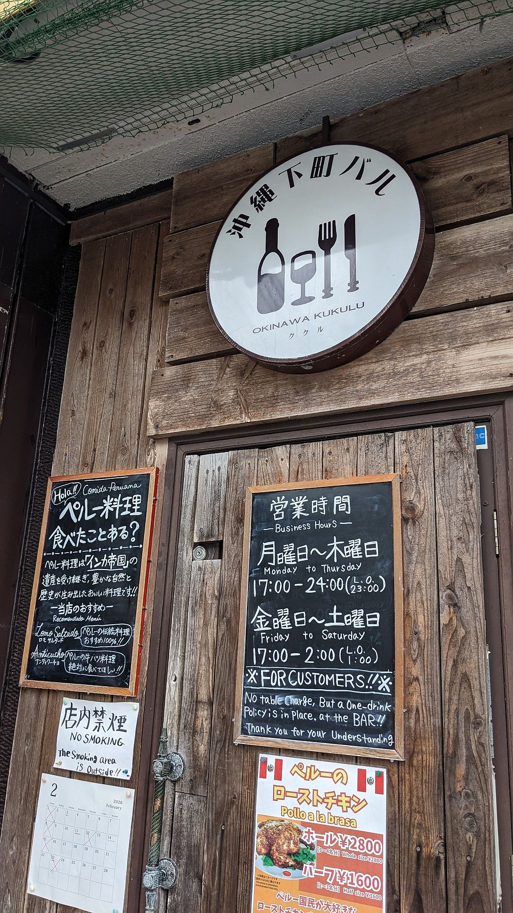 Serves meat, vegan options available. A Peruvian restaurant and bar located in Naha, offering a variety of South American dishes. The menu includes specific vegetable-based options such as "Ceviche de Verduras" and "Yuca Frita." Diners can also order a vegetable burrito or the house salad. Open Mon-Thu 5:00pm-12:00am, Fri-Sat 5:00pm-2:00am. Closed Sun.