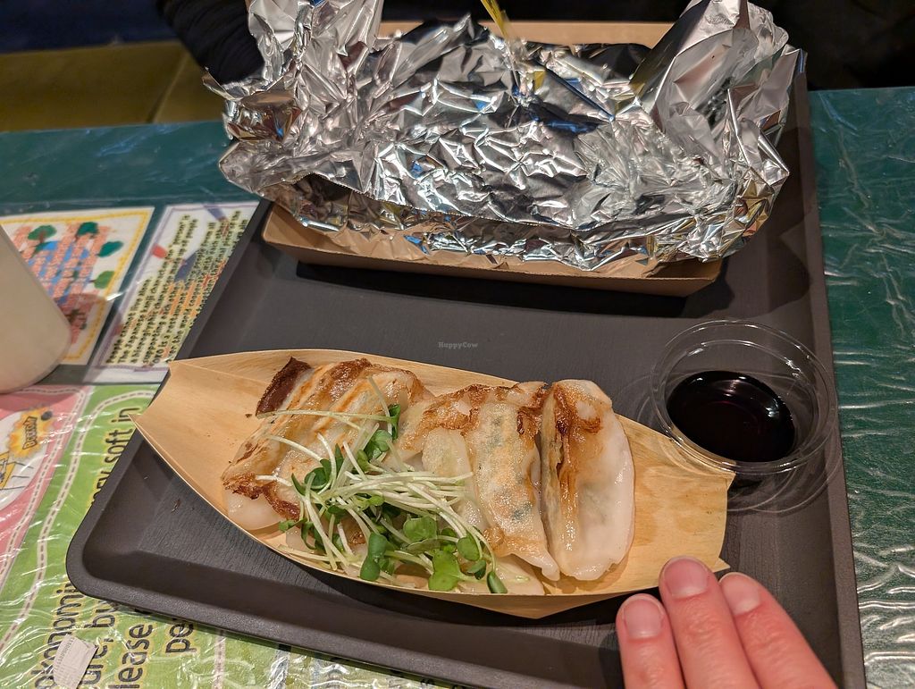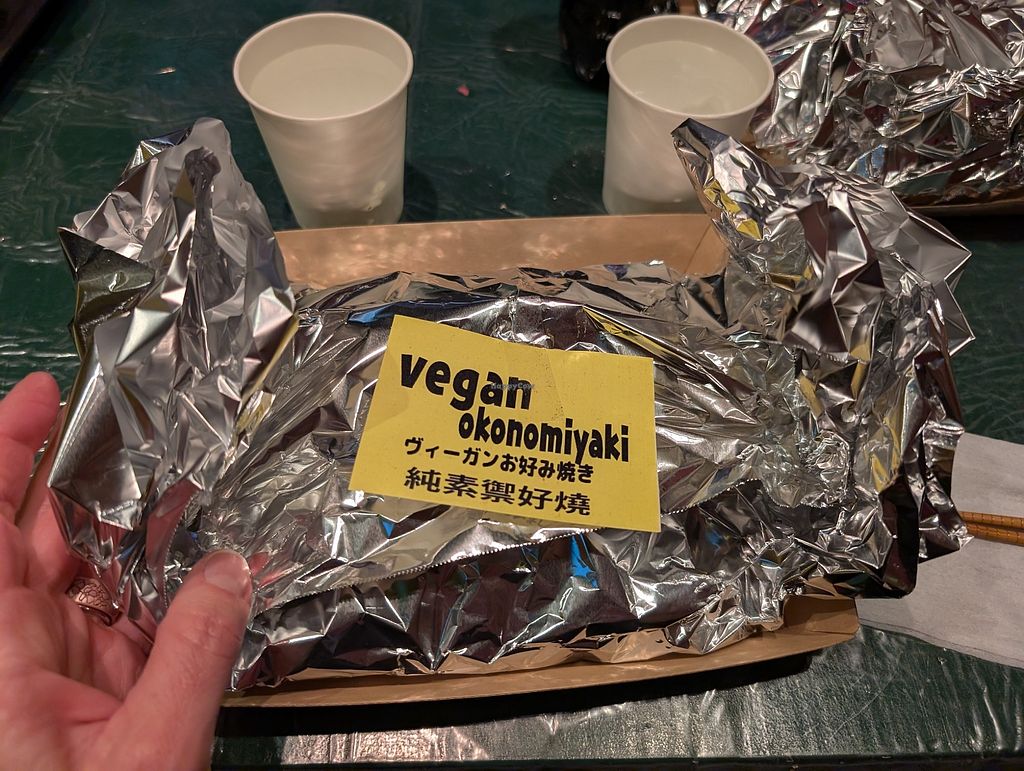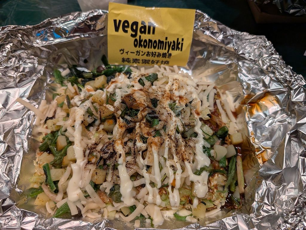 Lots of options! You can tailor your okonmiyaki with 5 veg of your choice and they have vegan mayo. Completely delicious! Also had the vegan gyoza which were crisp, chewy and amazing. 11/10 stars!