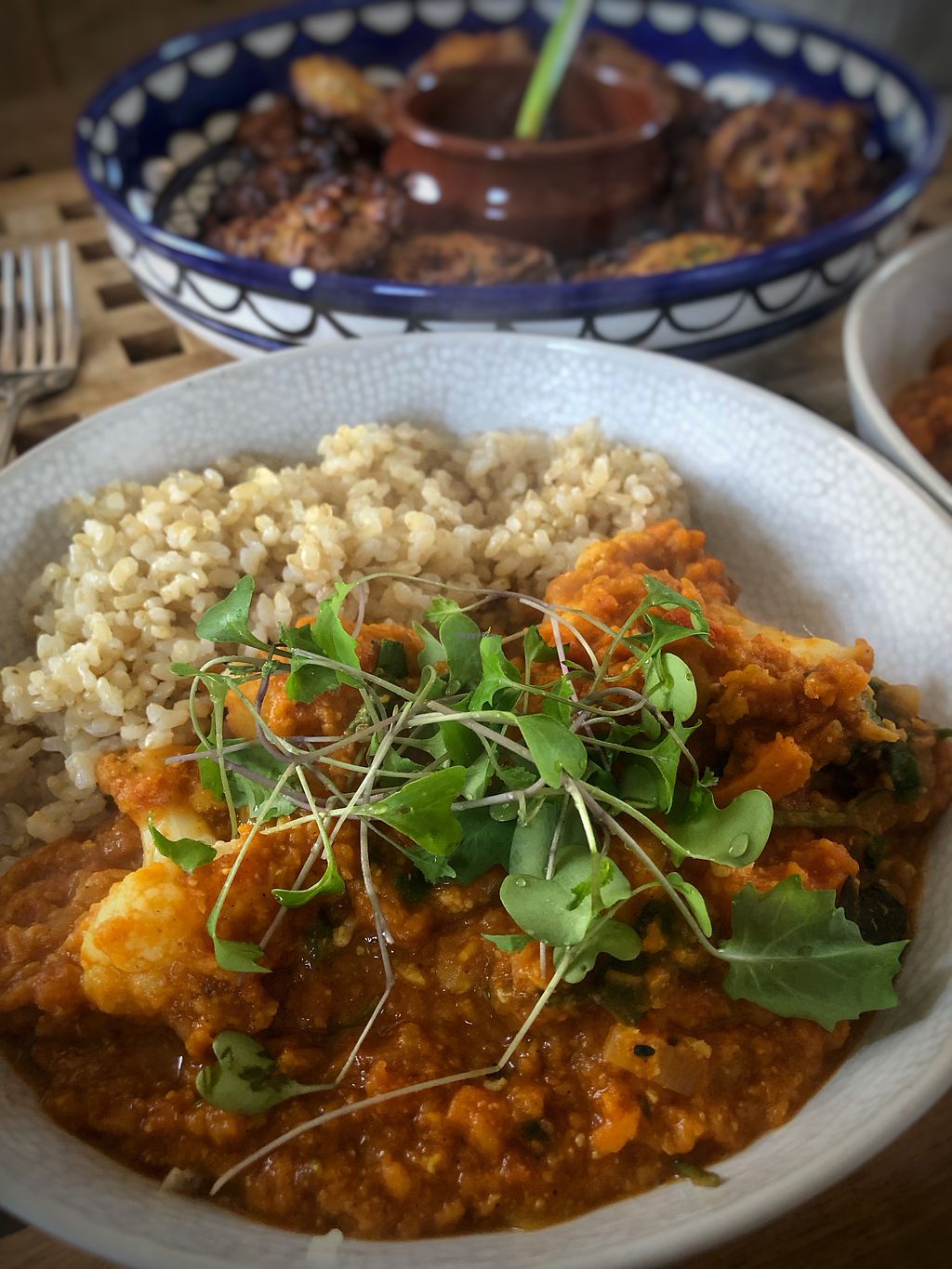 Tried the vegan chickpea curry with rice and bread with a dessert of apple crumble