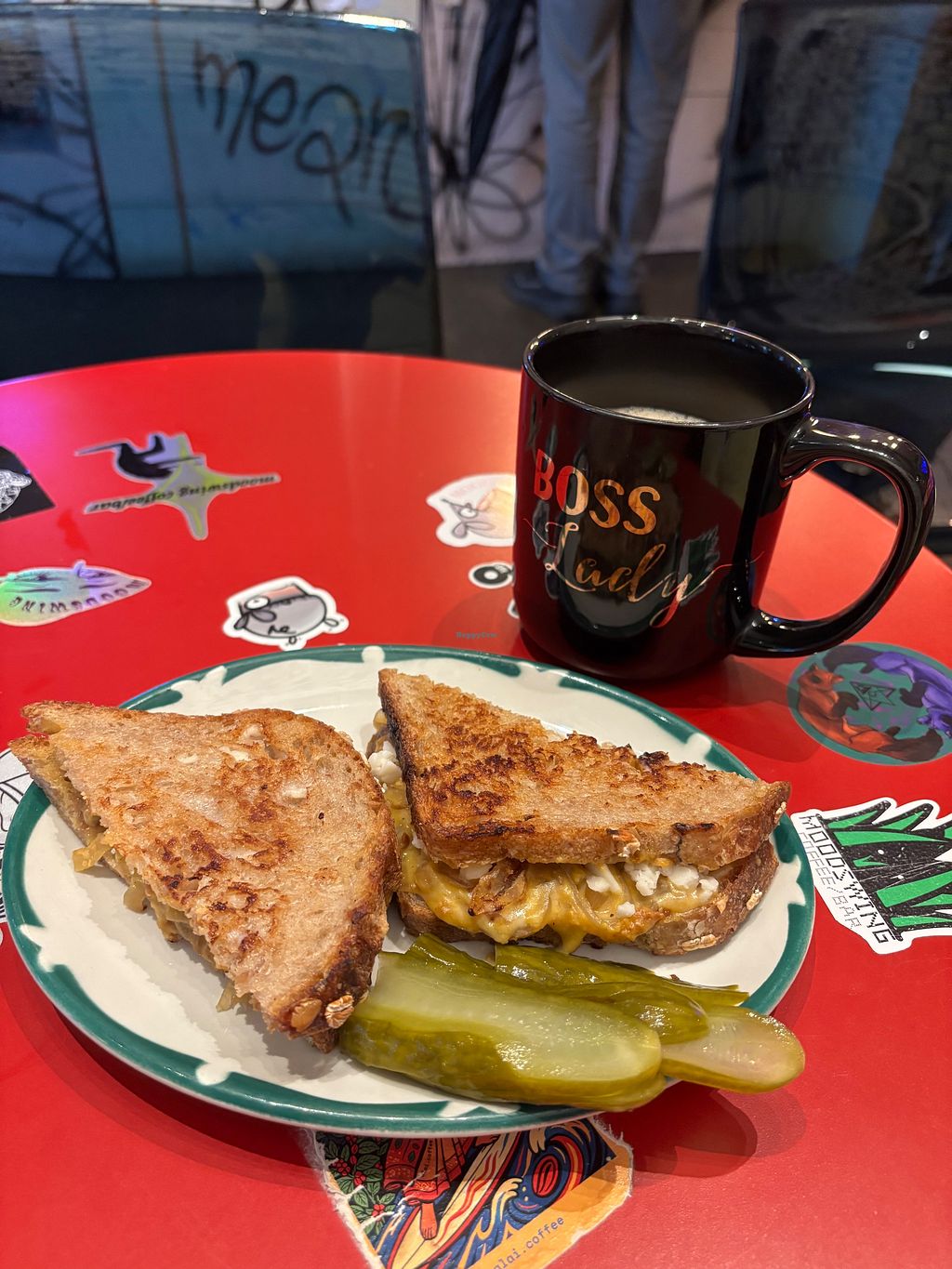Amazing latte and grilled cheez sandwich (super delicious) . Oat milk is free of charge yayyyyy!! Only thing is the pickles weren’t good at all. Other than that, it’s a Reasonably priced spot, great cozy interior, lovely staff, overall great vibes.