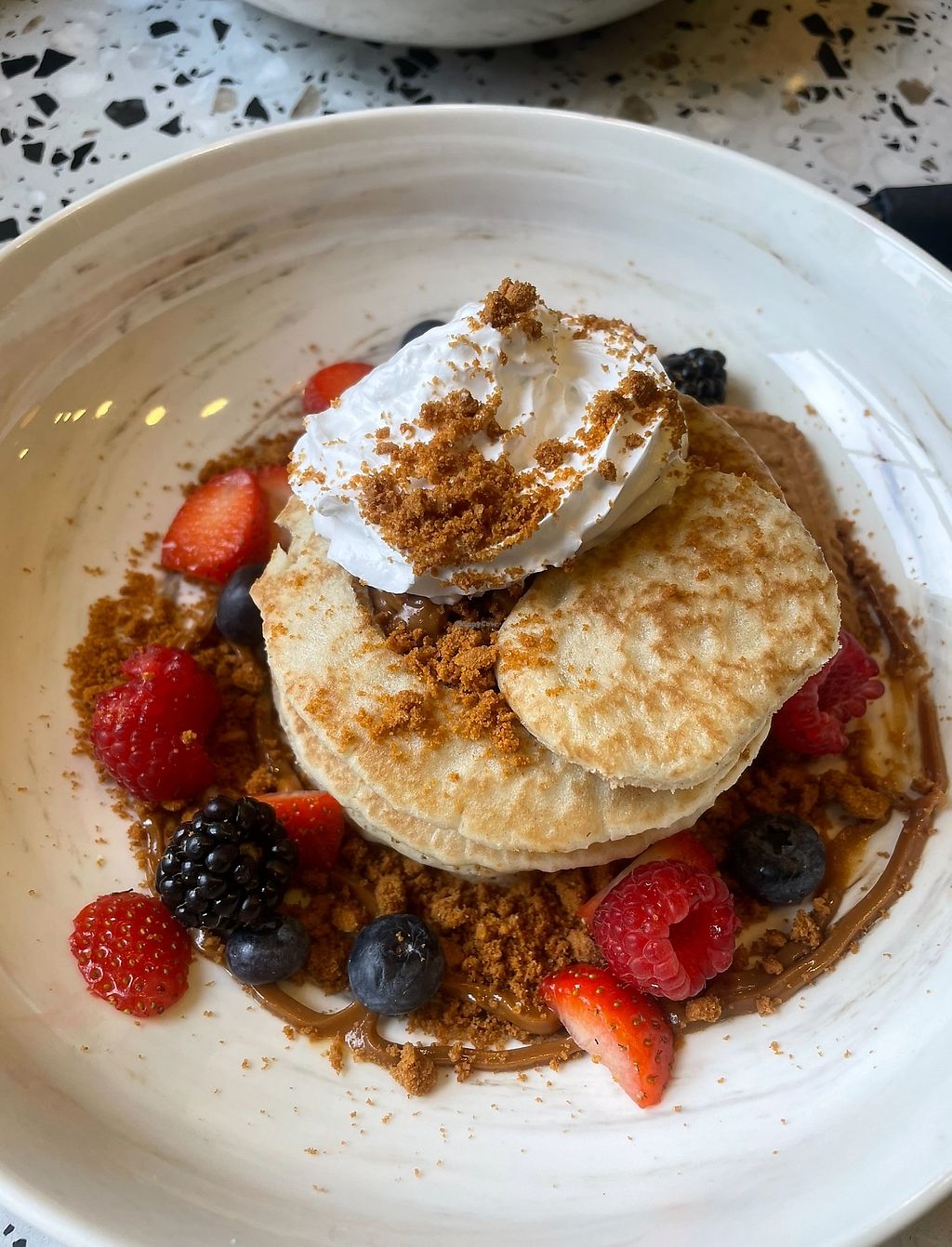 First time eating here today and I went for the biscoff pancake stack! Really nice and large portions! Would like to go back and try something savoury!