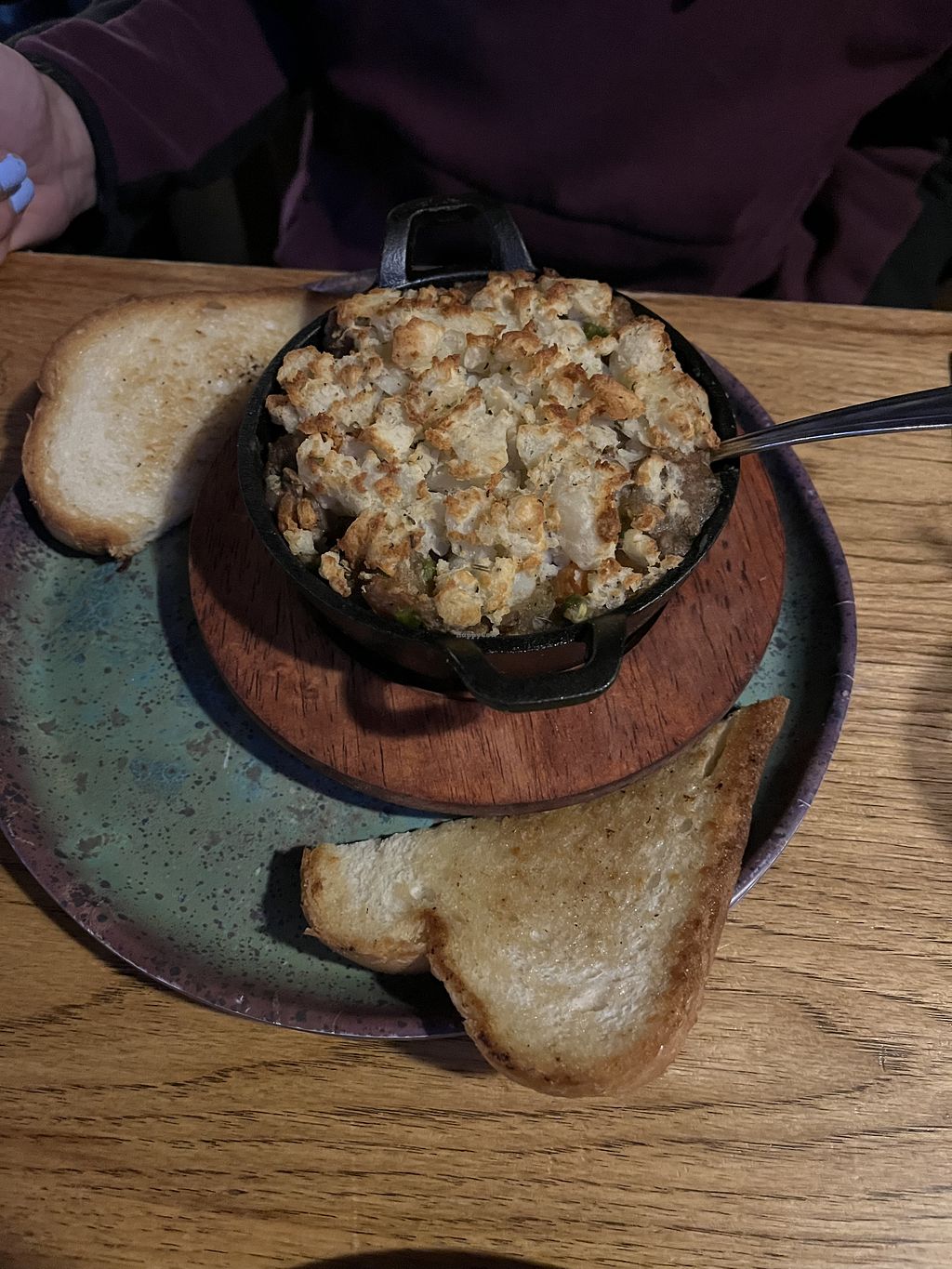 Update 12/4/21: vegan Shepards pie and carnivore Shepards pie is under construction due to a new chef. 😭 I got the vegan chili dog and it was good. Comes with fries. Not really picture worthy. Service was awesome this time!