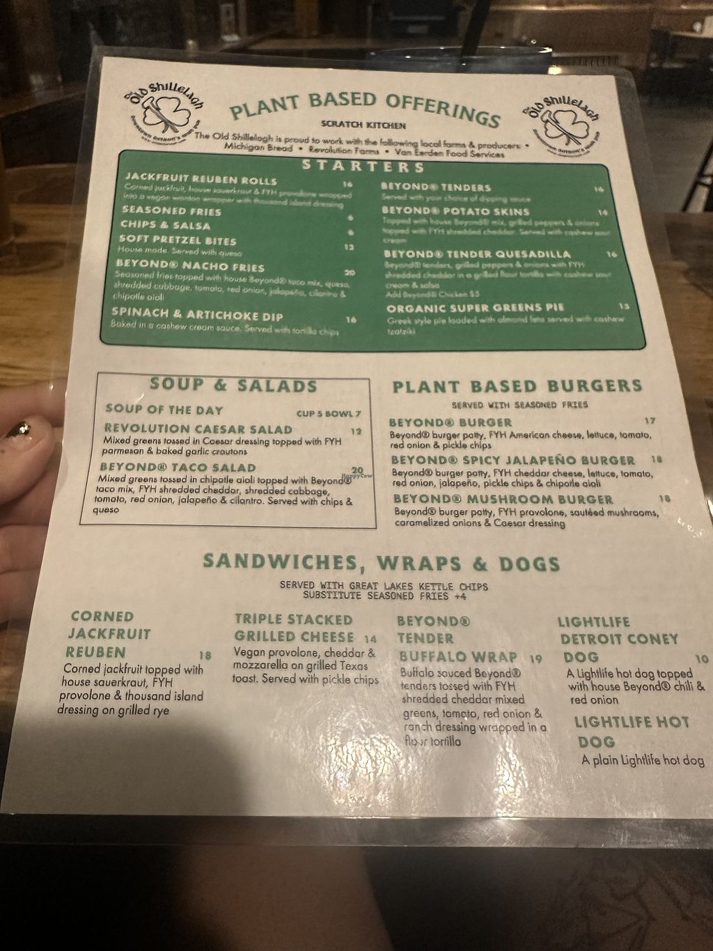 Really great vegan options! Beyond Buffalo Wrap was huge and very good. Fries were also great and had a nice seasoning on them. My partner had the Vegan Shepherd’s Pie and said it was very good too. If you are near Greektown, do yourself a favor and stop on in!
