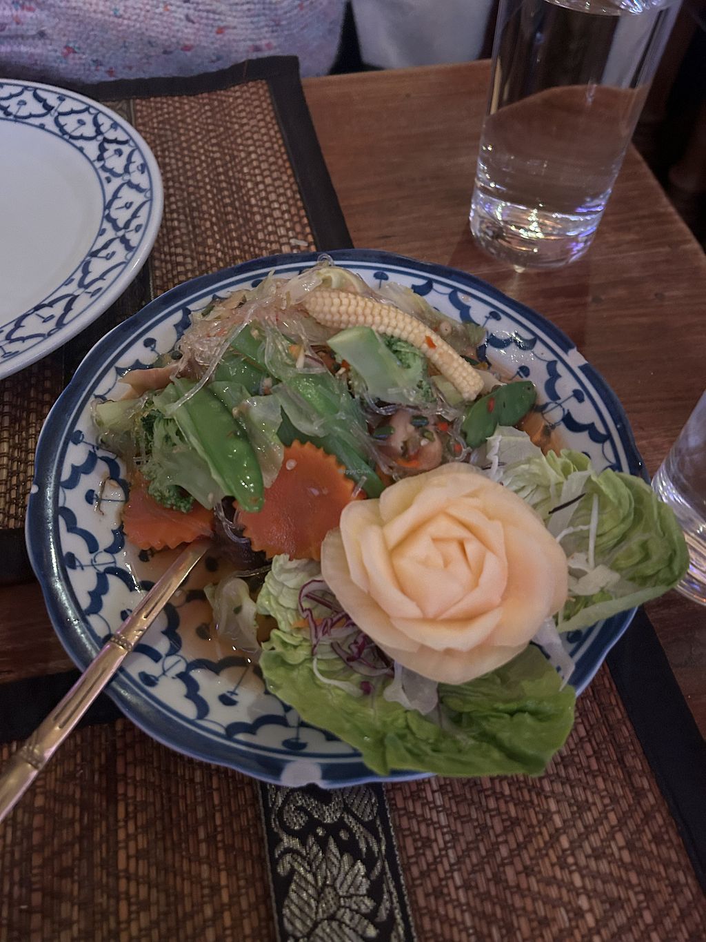 Menu clearly has an allergy key so you can tell which will be vegan. They have a vegetarian section so using the key can work out what I'd vegan. I had the spring rolls and the priew wan pak which is vegetables in a sweet and sour sauce