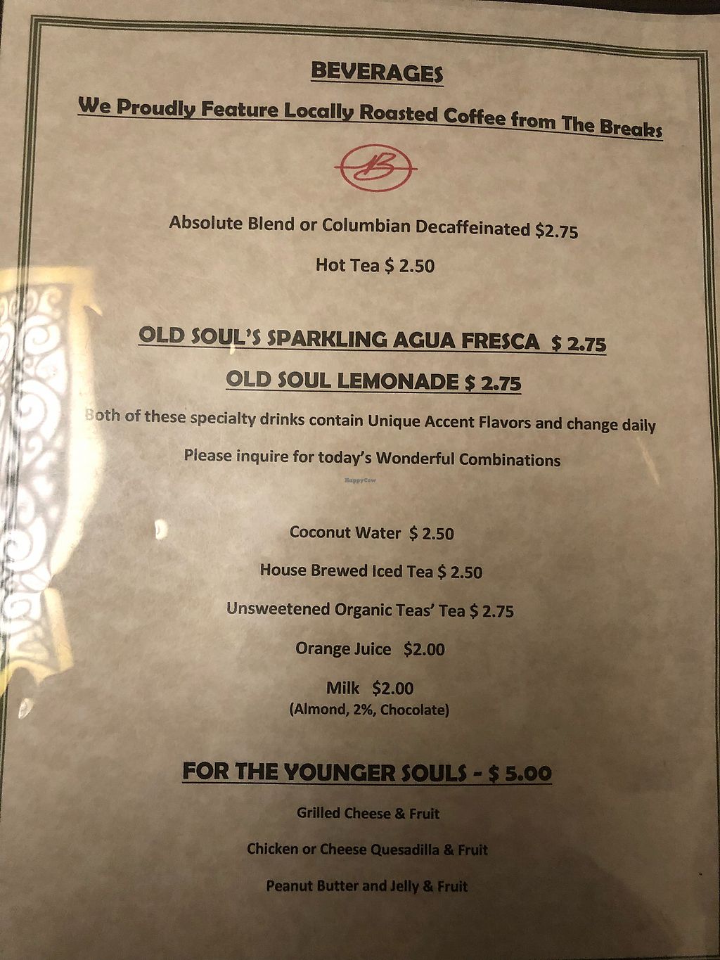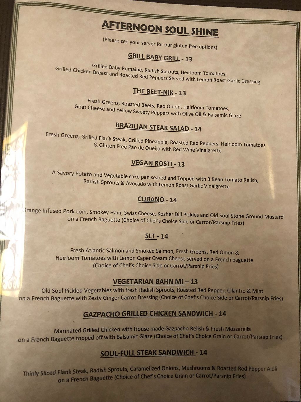 Afternoon menu options