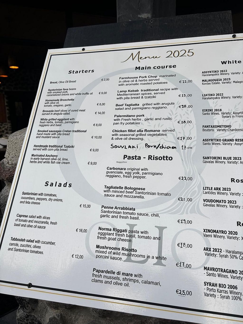 Serves meat, vegan options available. Greek restaurant located in Megalochori Square with a rooftop terrace. The menu features a labeled vegan risotto with vegetables and turmeric sauce. Other dishes such as fava beans, bruschetta, and various salads can be made vegan upon request by omitting meat or cheese. Temporarily closed, please send an update to HappyCow when this venue reopens.