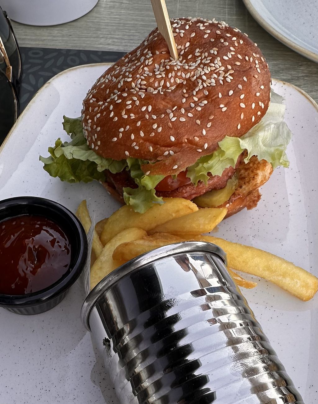 Vegan burger and fries