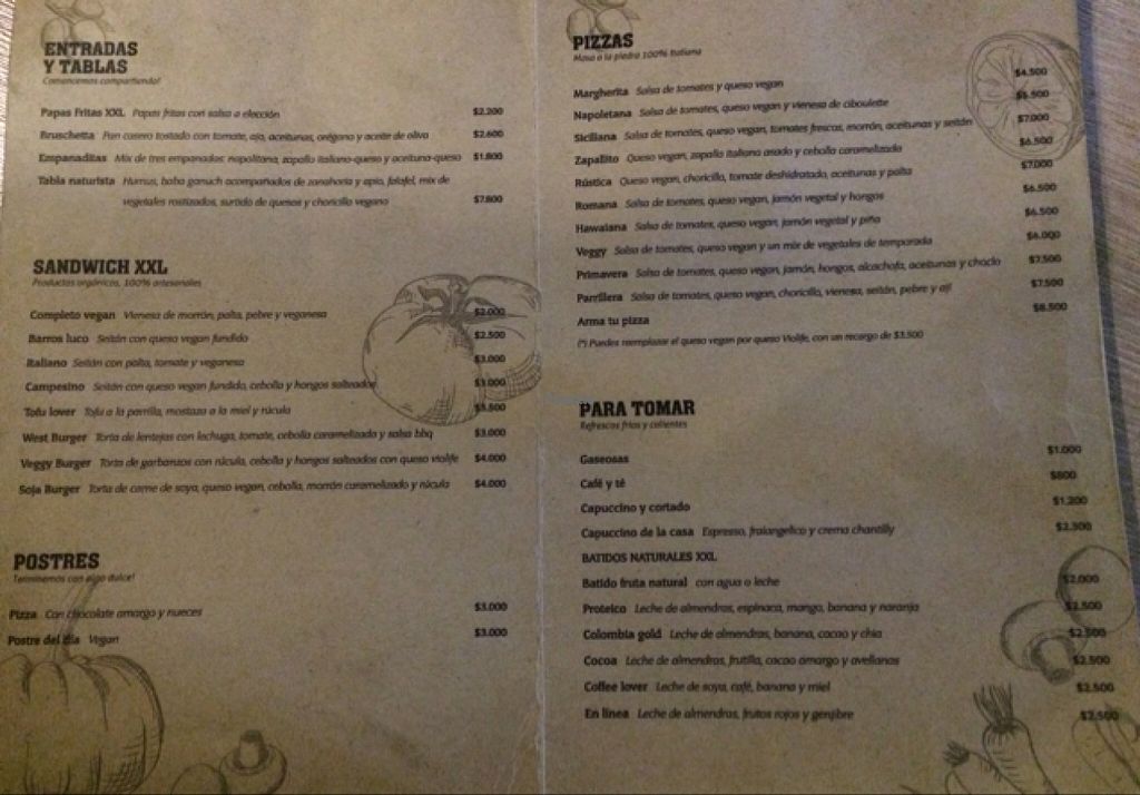 Es un local pequeño y de muy lindo ambiente. Me encantó que tuvieran un menú completamente vegano con muchas opciones, pedí la pizza con seitán y estaba muy buena. El servicio es muy rápido, definitivamente volveré