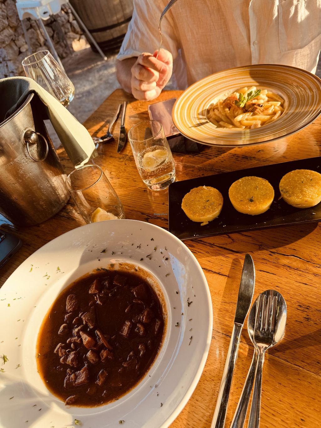 Šurlice (home-made pasta) with soy-mushroom goulash