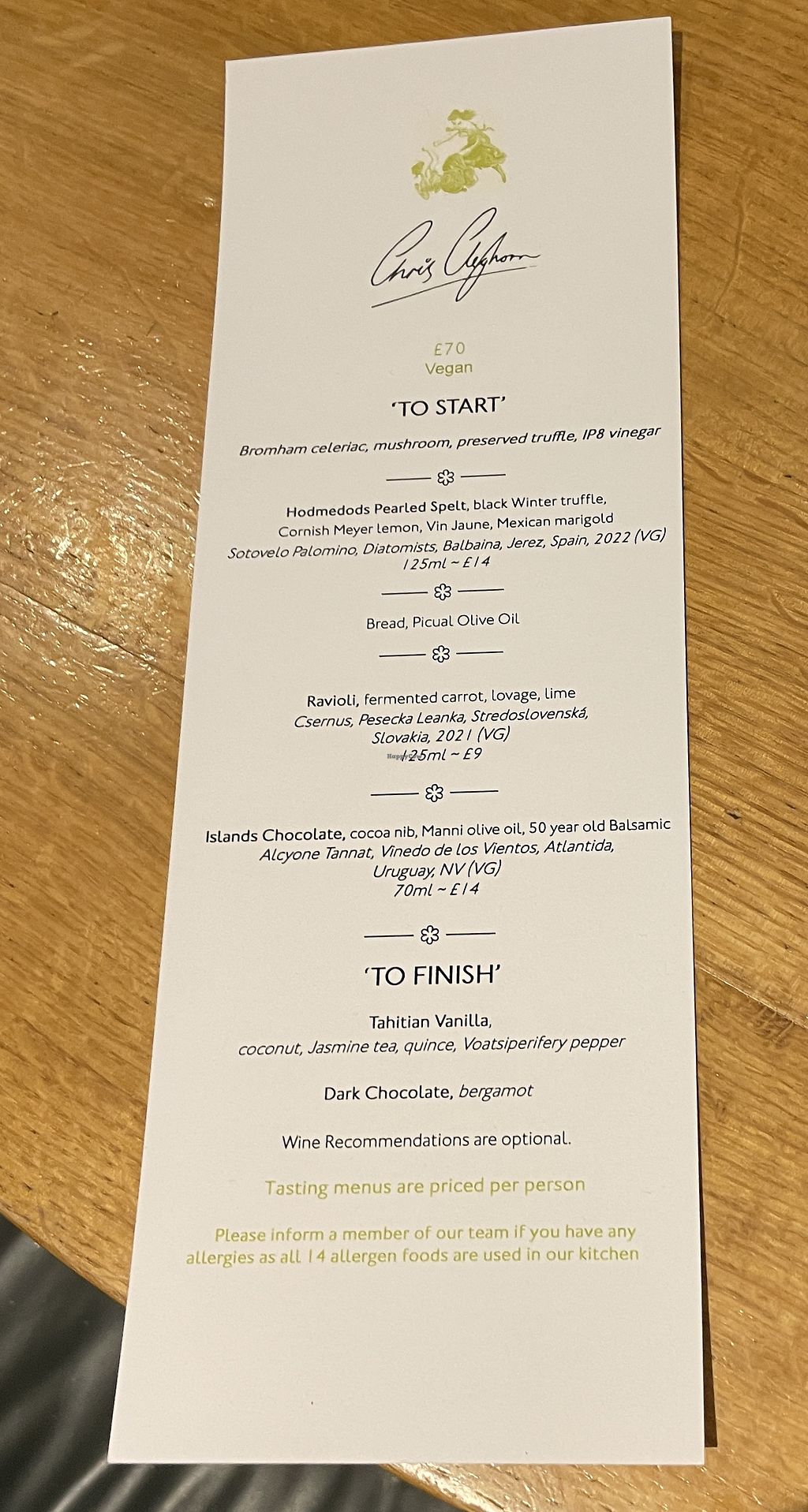 My husband and I came here for our 20th wedding anniversary and had the vegan five course tasting menu. It was genuinely delicious. Each dish was carefully considered, well balanced flavours, and tasty. The ingredients was all in season and fresh, and a chef came to our table to serve each dish and explain it to us (lovely, if a little awkward). It made for a really special night out.