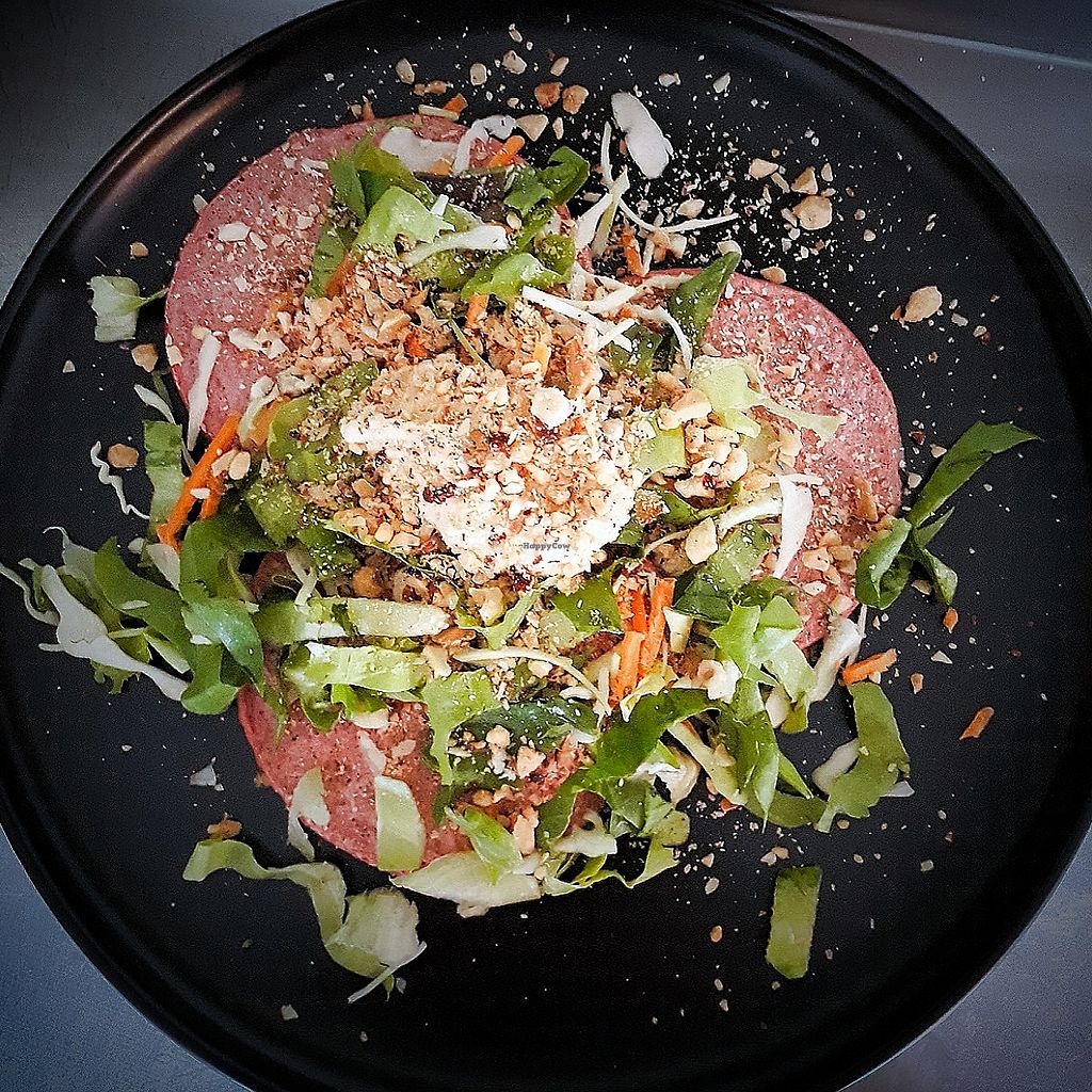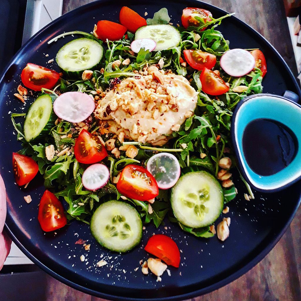 Serves meat, vegan options available. Healthy cafe offering vegan pancakes, smoothies and salads. All coffees can be prepared with oatmilk or soymilk. Confirmed closed, Oct 2019.