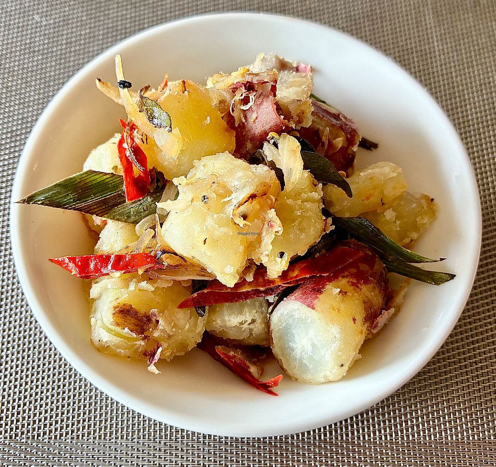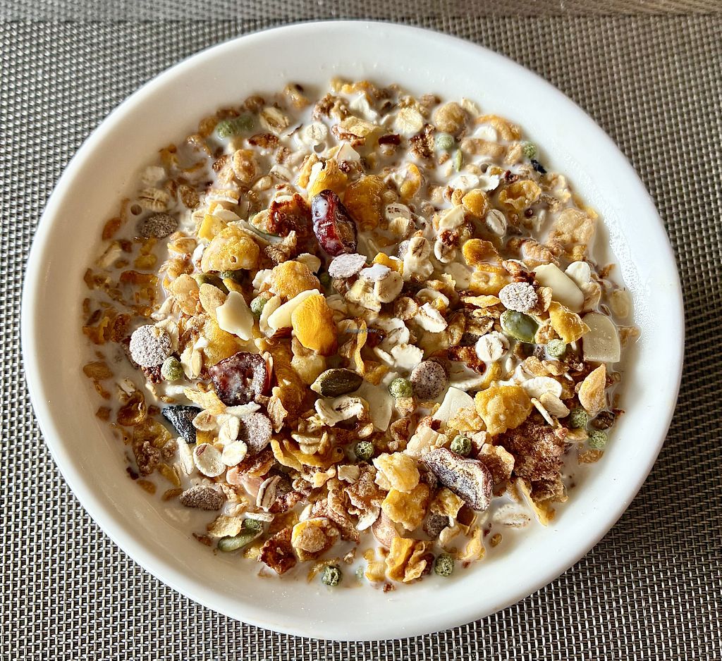 Serves meat, vegan options available. Resort restaurant offering a well labelled buffet with all allergens listed. Vegan choices include hoppers, milk rice, baked beans, muesli, porridge, dal, vegetable rice, tabbouleh, sautéed mushrooms, aloo mutter, idli, sambar, puri, dosa, bread pakoda, vermicelli upma, spring rolls and more. Also offers vegan items on the a la carte menu. Open to non-guests. Open Mon-Sun 7:00am-10:30am, 12:00pm-3:00pm, 6:00pm-10:00pm.