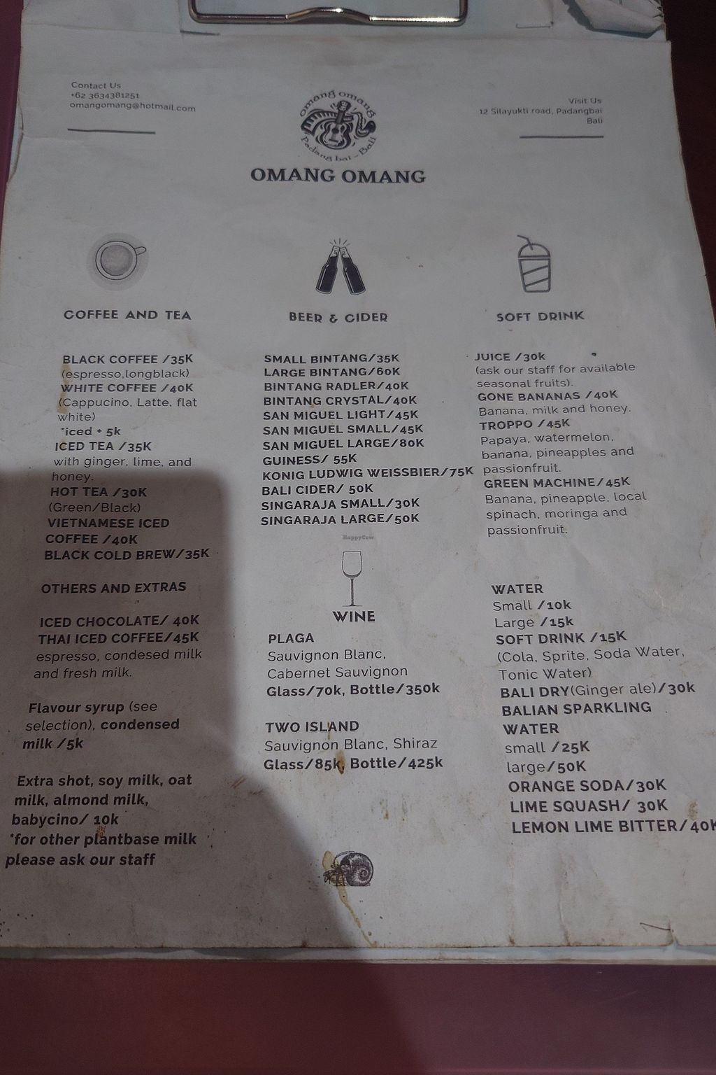 Menu drinks