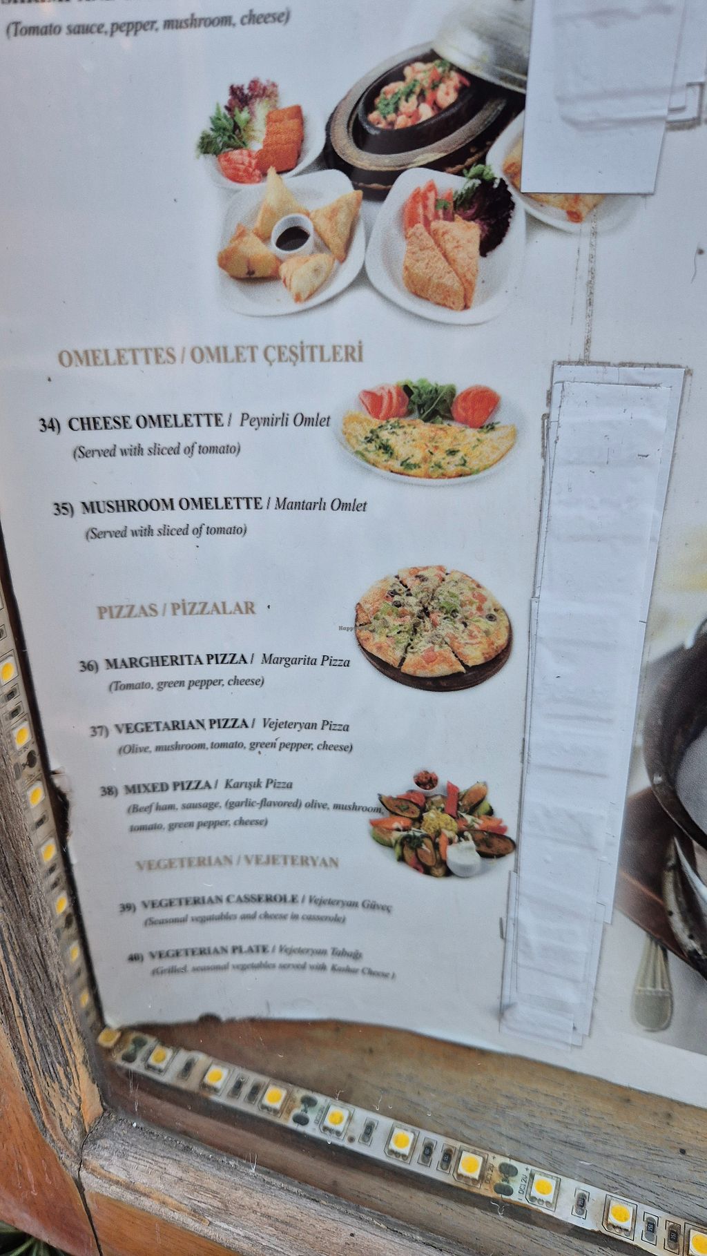 Understood vegan diet. Made me a vegetable and mushroom pide without cheese. Had a ezme and hummus with pitta bread to start. Went back the next day for drinks only and the opportunity to sit in the roof terrace restaurant with great views over the city.