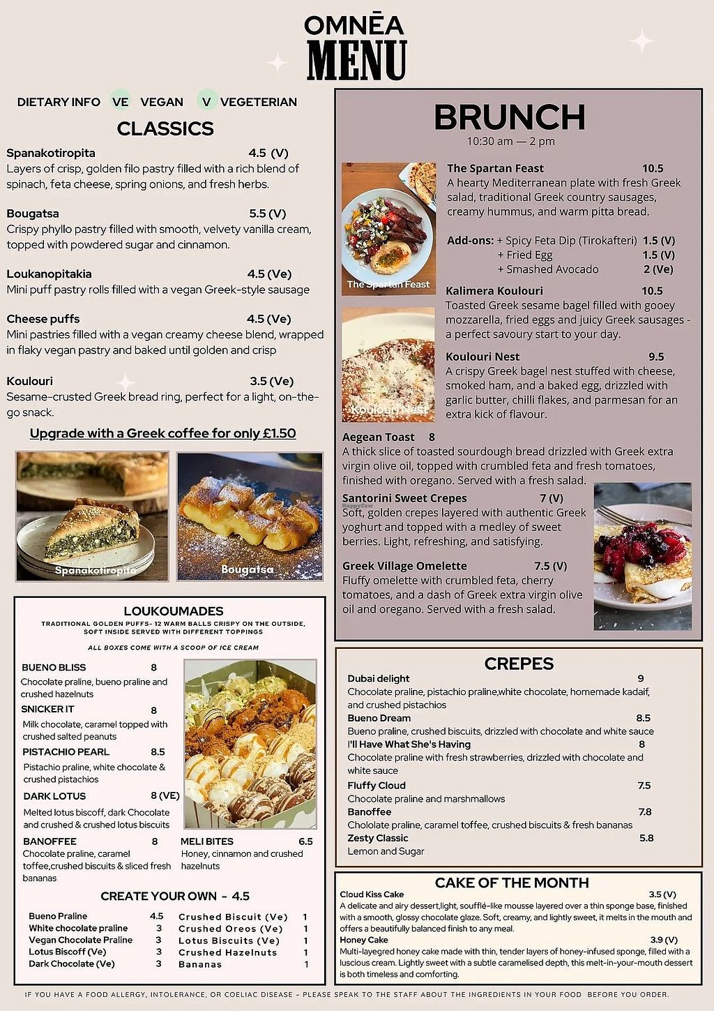 Serves meat, vegan options available. Greek-inspired cafe offering vegan pastries and desserts, including loukanopitakia (puff pastry rolls with vegan sausage), cheese puffs with vegan cheese, and golden puffs with lotus biscoff topping. Open Fri 17:00-22:00, Sat 10:30-21:00, Sun 10:30-18:30.