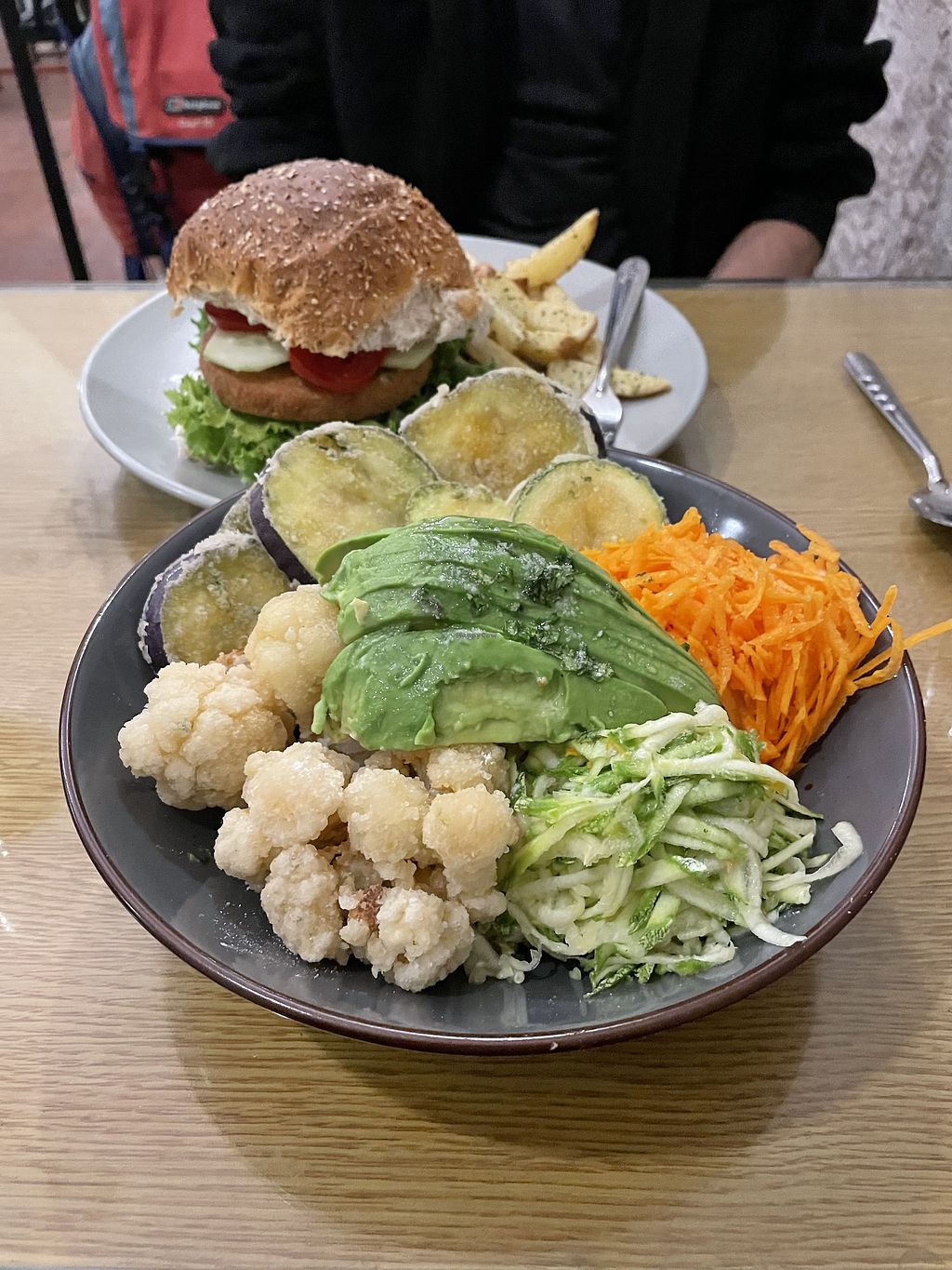 Vegan first with too many great and surprising options. The courtyard is lovely and right next to the main square.