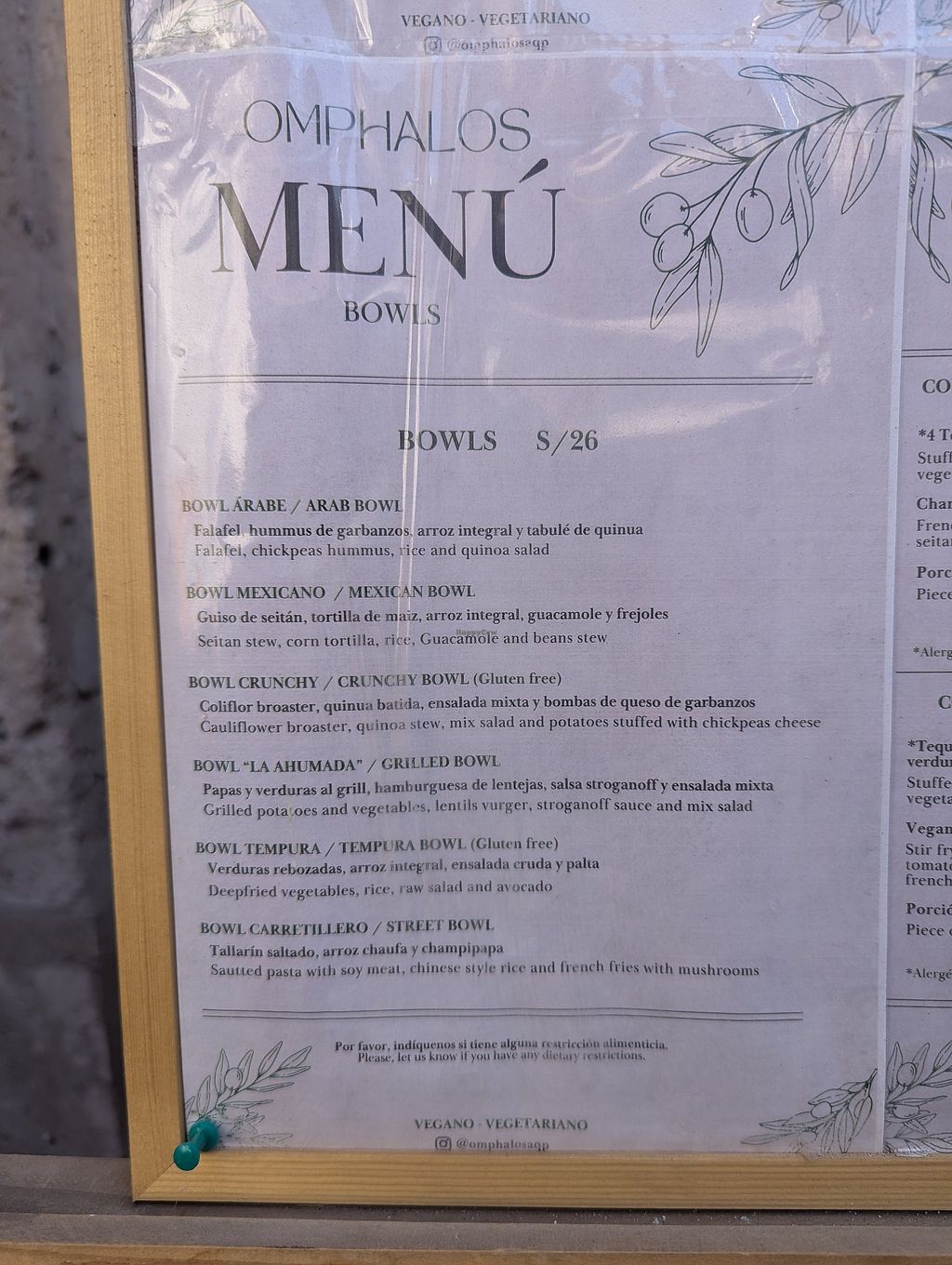 Vegan & vegetarian cuisine has improved over recent years. More imagination with dishes would make it out of the ordinary. There are better options in Arequipa.
