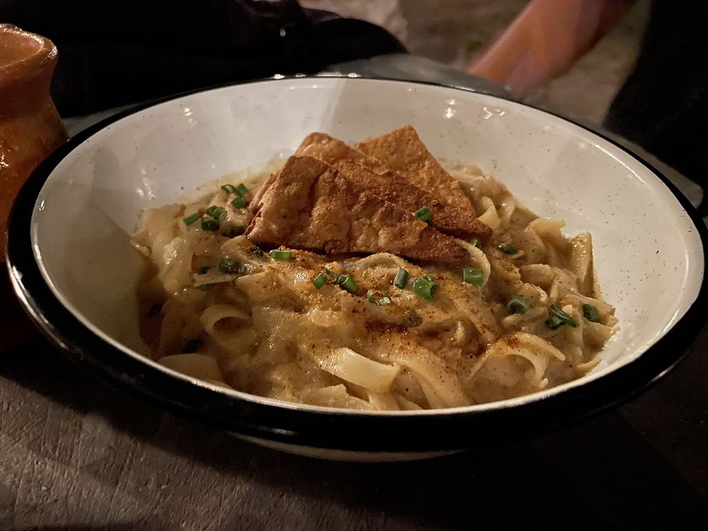 alfredo pasta and tofu nuggets