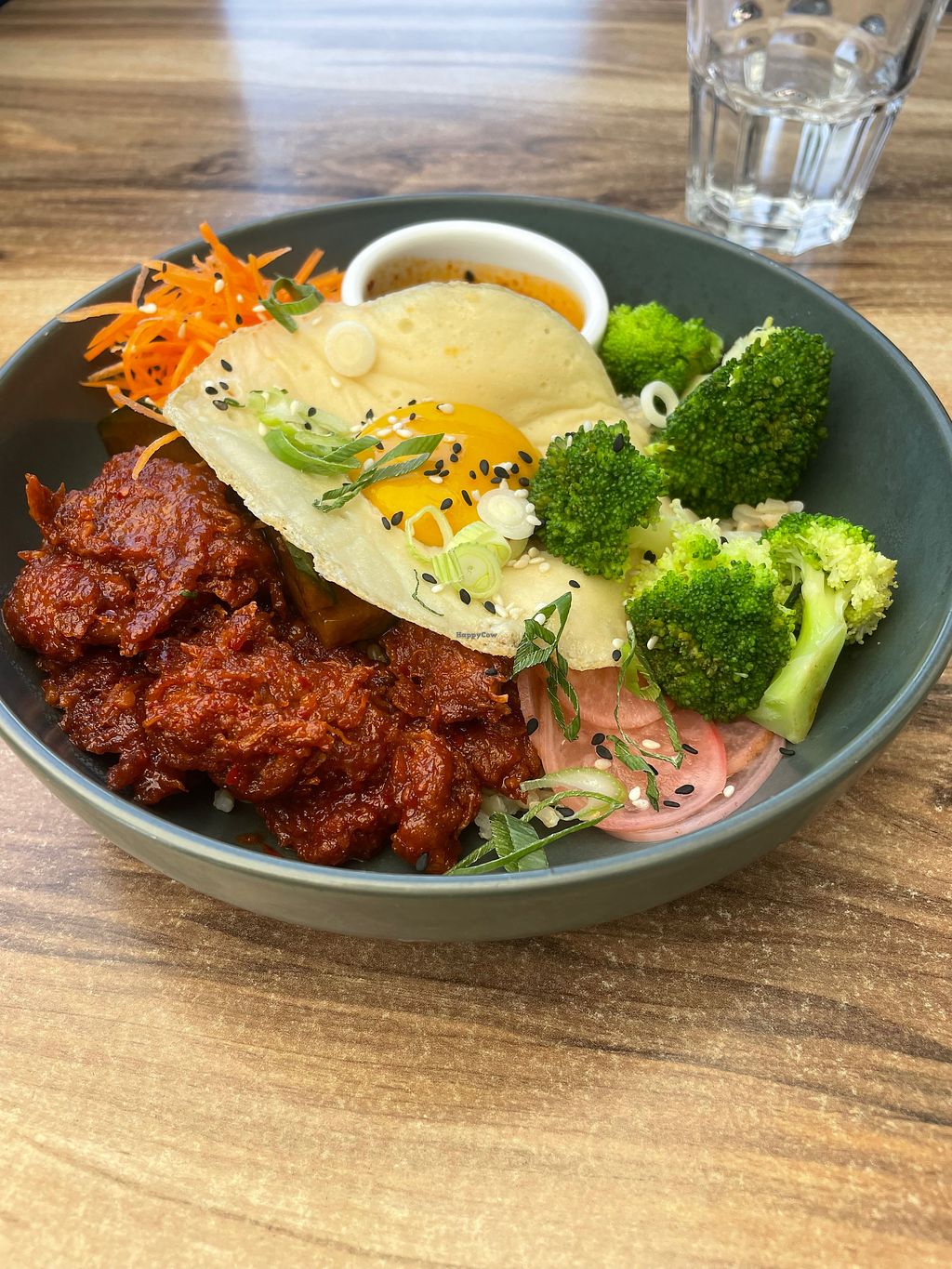 Ordered the Korean bibimbap bowl. The chickun was great! (shredy chewy texture). Pretty sure it’s one of those imported frozen Asian brands. Could have used more spice. The vegan egg tasted of nothing (and was an extra $5). Needs black salt and a runnier yolk. Came with a side of a chili vinegar, which was not hot and kinda weird. Shredded carrot and broccoli pretty boring. Some avocado would be great addition. Portion small and I wasn’t full. Probably wouldn’t rush back as it’s off the beaten track and a tad expensive for what you get.