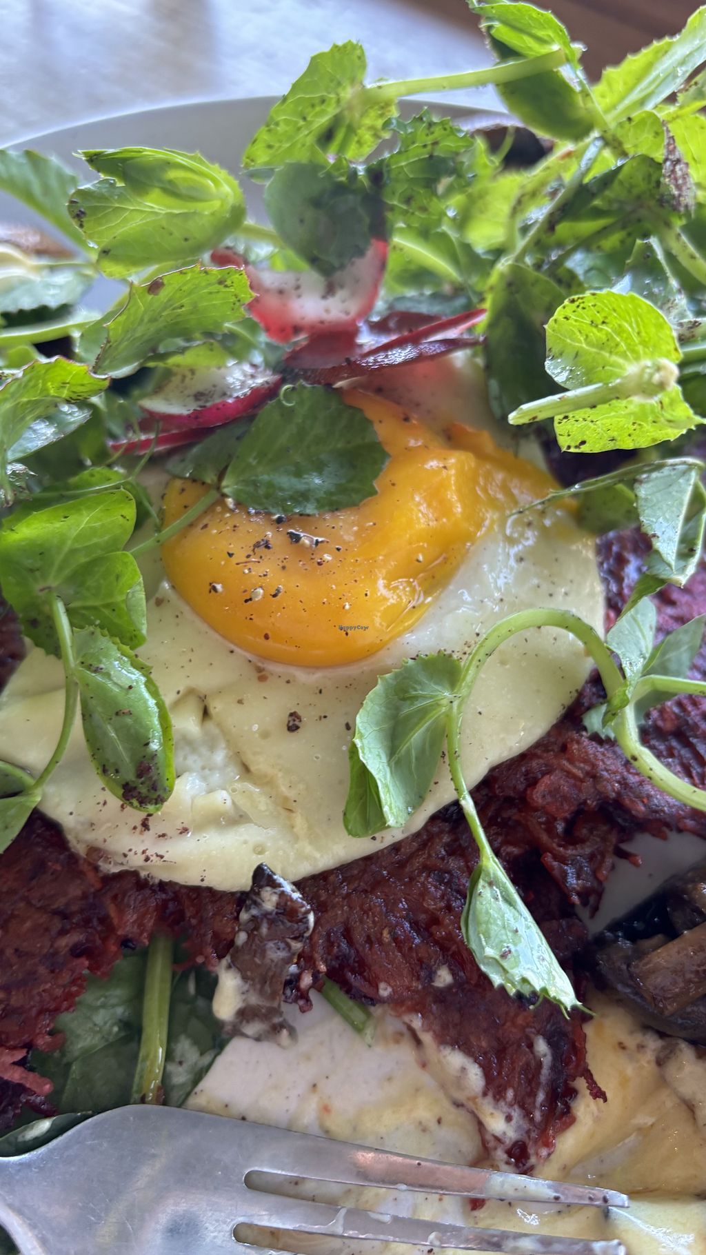 The vegan fried eggs look incredible and taste delicious. I’ve been twice and enjoyed both meals, especially more recently when I had the egg & bakon roll (so yum!). The outside area is really lovely on a sunny day.