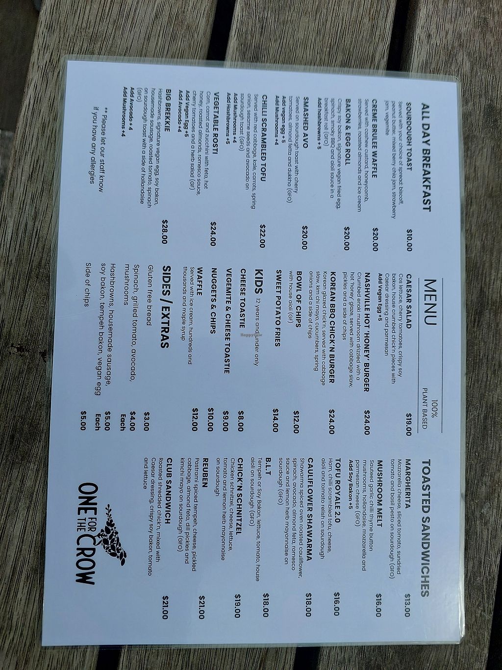 Read moreOne for the Crow is still one of my favourite cafes and I come here every few weeks. I still love the venue and the food is still delicious following a change of ownership. My favourite is scrambled tofu on toast though other options are delicious too. Love that I can get an iced mocha with vegan icecream. Staff are friendly and helpful. I plan to keep coming back!