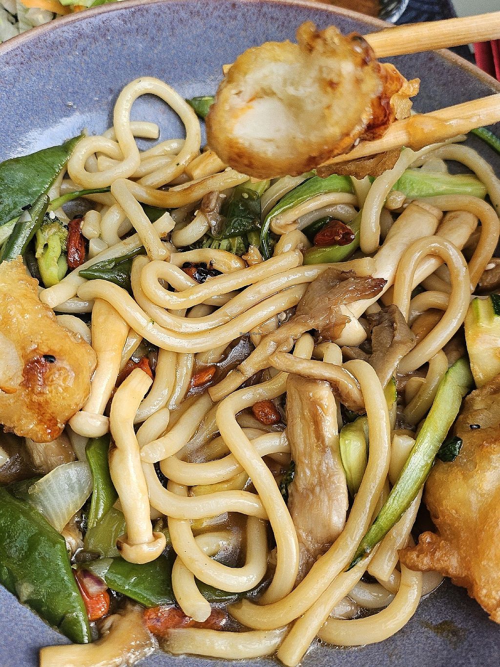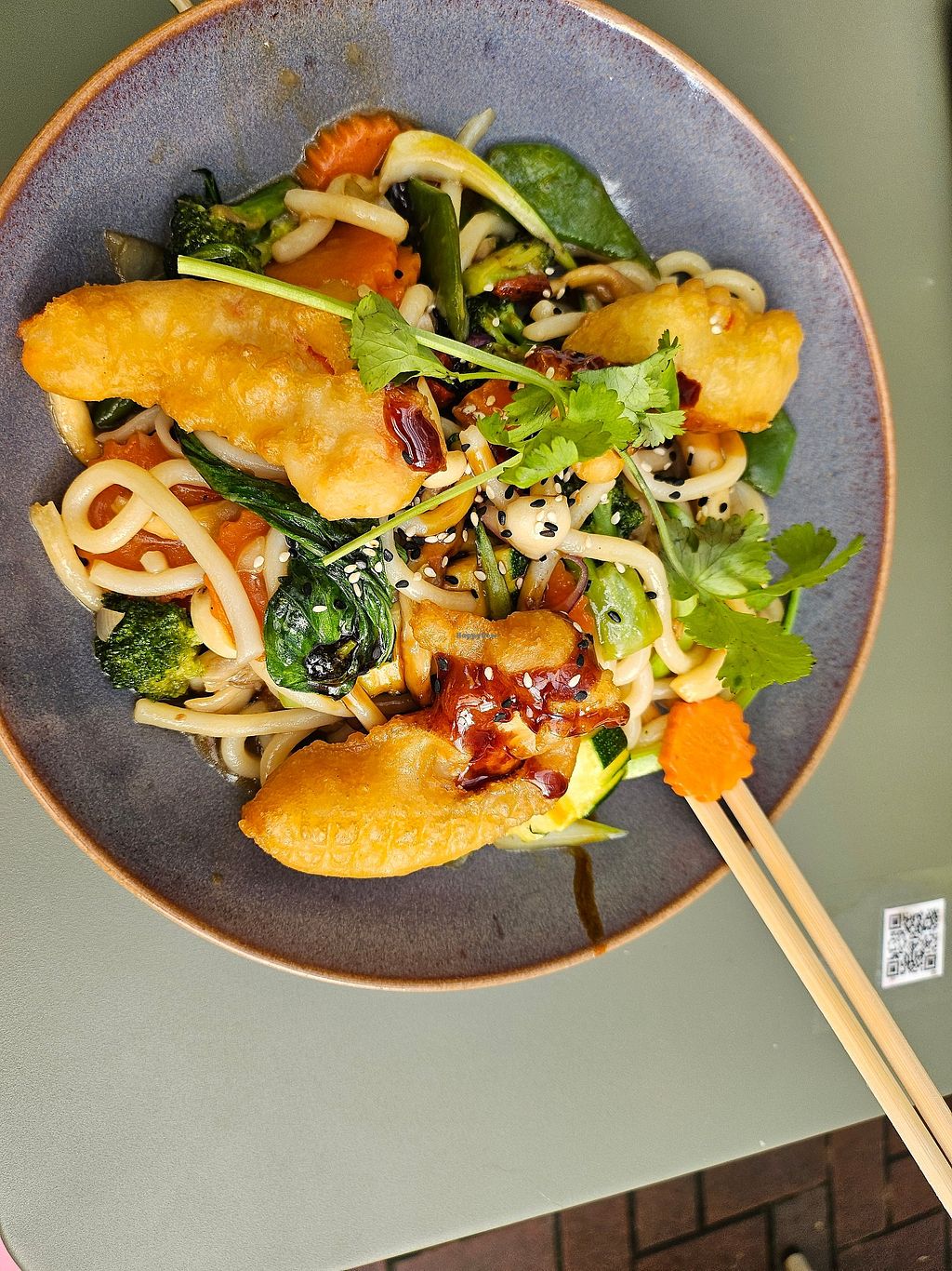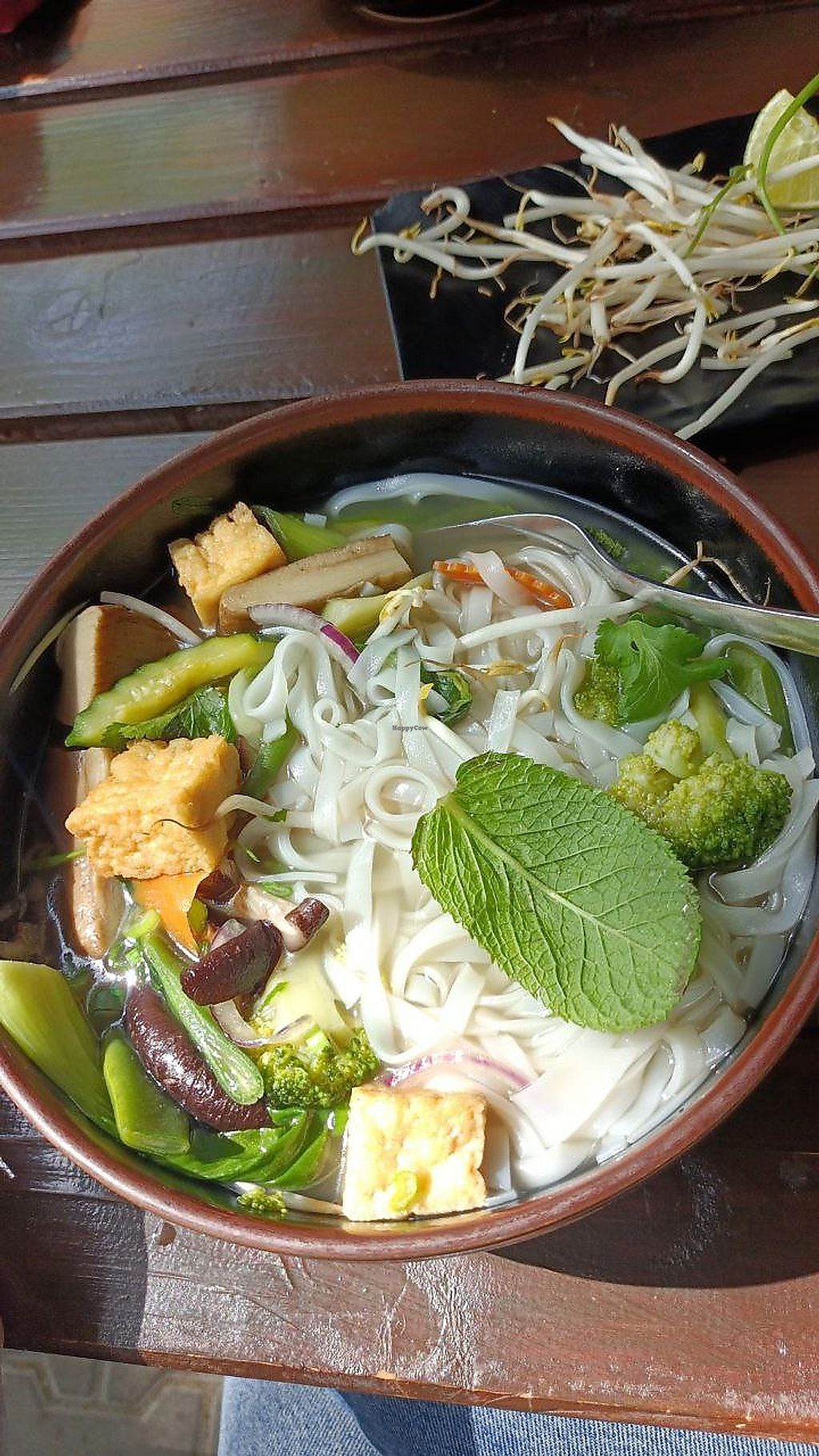 Nettes Ambiente im Außenbereich. Netter Service. Großes Angebot an veganen und vegetarischen Speisen. Nicht zu vergleichen mit asiatischen Fastfood Restaurants.